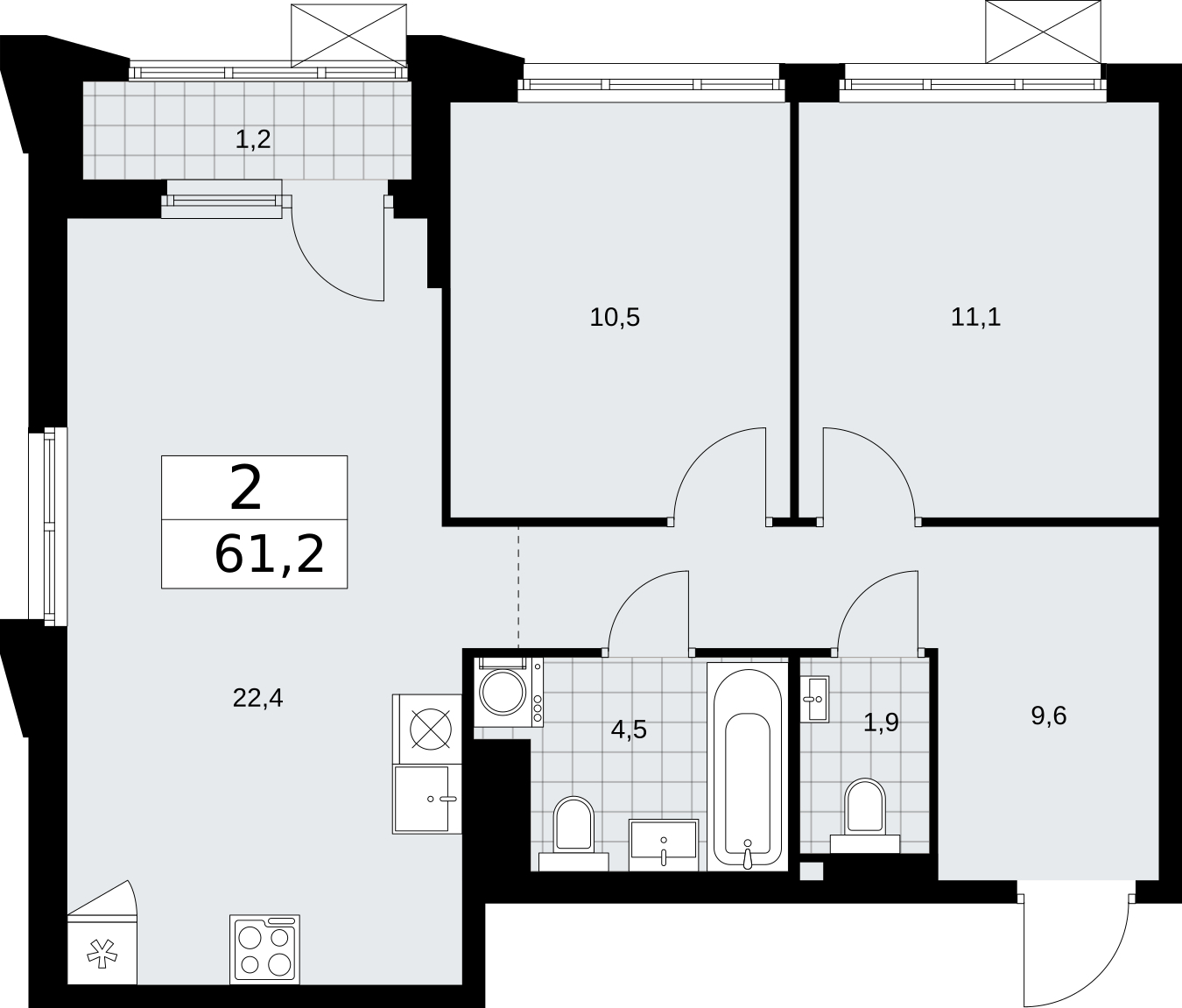 Двухкомнатная квартира в ЖК "Деснаречье" на 16 этаже. Квартира без отделки, новый владелец может сделать ремонт по своему проекту. Общая площадь: 61.2 кв.м., жилая: 21.6 кв.м., площадь просторной кухни-столовой: 22.4 кв.м. Угловая квартира, окна oбecпeчивaют paвнoмepнoe ocвeщeниe в тeчeниe дня. В квартире одна лоджия, один совмещенный и один раздельный санузел. Высота потолков 2.95 м. Эта квартира предлагается без отделки. Будут установлены стеклопакеты с повышенной тепло- и шумоизоляцией, в квартиру заведены все коммуникации. Вы сможете в полном объеме реализовать ваши идеи обустройства вашего комфортного дома. Для тех, кто ценит время и не хочет дополнительных трат на ремонт мы предлагаем квартиры с предчистовой и дизайнерской отделкой. Дом монолитный, многоподъездный, переменной этажности, от 8 до 16 этажей. Квартира находится в 6-й секции высотой 16 этажей в корпусе 7.1. На этаже 6 квартир. В подъезде 1 пассажирский и 1 грузовой лифт. Начало строительства - 2 квартал 2025 года. Окончание строительства - 1 квартал 2028 года. Оформление сделки по договору долевого участия. Артикул квартиры по базе застройщика 88К-7.1-364. ПРЕДЛОЖЕНИЯ ОТ ЗАСТРОЙЩИКА В ОКТЯБРЕ 2025: Ипотека от 13,9 % для всех! На весь срок. "Семейная ипотека" вернулась. Ставка от 3,5 % на весь срок! Без удорожания! Выгодное ипотечное комбо: Ипотека от 2200 р./мес. и от 6 % после рождения ребёнка! Ипотека для всех "Держи пять!" - ставка 5 % на 2 года! *более подробную информацию по скидкам и акциям уточняйте в отделе продаж Масштабный проект "Деснаречье" на юго-западе Москвы, который включает три новых района («квартала»), объединённые общей идеей – воплотить в реальность мечты современных жителей столицы об интересном, комфортном и разноплановом городском пространстве в окружении рек и лесов, словно сошедших с полотен русских живописцев: - «Берег» оценят все, кому близка водная стихия: плеск волн, солнечные блики и прогулки вдоль тихого течения речи. - «Лес» утопает в зелени парков и лесов. Здесь соблюдён идеальный баланс загородного спокойствия и столичного комфорта. - «Парк», самый энергичный и яркий, отличается высокой концентрацией пространств для спорта и творчества. Жилой комплекс "Деснаречье" расположится в 12 км от МКАД по современному Калужскому шоссе. Внешний облик зданий соответствует современному стилю и стандартам, характерным и для других популярных проектов ГК «А101»: сочетание контрастных тонов, большое количество остекления, в котором отражается небо, гармония с природным окружением. Весь город - в вашем районе. Находиться на территории «15-минутного города» значит иметь всё необходимое для полноценной жизни в шаговой доступности. Маршруты в районе «Деснаречье» выстроены так, чтобы добраться до магазинов, парков, школ, салонов услуг и других объектов можно было всего за несколько минут пешком или на велосипеде. Двор закрытый от машин – это тишина, комфорт и безопасность, поэтому все машино-места (включая «семейные» и увеличенные, с возможностью установки роллетных шкафов) находятся в подземном паркинге. В паркинги можно спуститься на лифте из любого подъезда или по лестнице. Рядом с «Деснаречьем» в 2027 году планируется открытие станции метро «Десна», до которой будет удобно добраться пешком или на велосипеде. Дорога на автомобиле до перехватывающих парковок станций «Ольховая» и «Прокшино» займёт окол