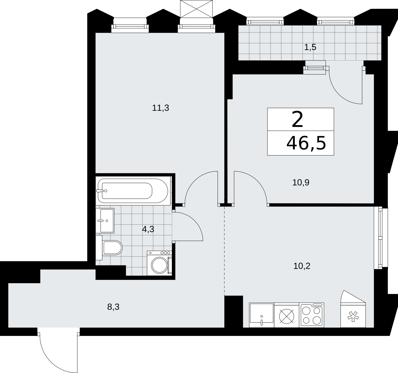 Продается двухкомнатная квартира в ЖК "Деснаречье" на 9 этаже. Квартира без отделки, после получения ключей можно делать ремонт. Общая площадь: 46.5 кв.м., жилая: 22.2 кв.м., площадь просторной кухни-столовой: 10.2 кв.м. Квартира угловая, очень светлая, естественная вентиляция при открытии окон. В квартире одна лоджия, один совмещенный санузел. Высота потолков 2.95 м. Эта квартира предлагается без отделки. Будут установлены стеклопакеты с повышенной тепло- и шумоизоляцией, в квартиру заведены все коммуникации. Вы сможете в полном объеме реализовать ваши идеи обустройства вашего комфортного дома. Для тех, кто ценит время и не хочет дополнительных трат на ремонт мы предлагаем квартиры с предчистовой и дизайнерской отделкой. Дом монолитный, многоподъездный, переменной этажности, от 8 до 16 этажей. Квартира находится в 8-й секции высотой 11 этажей в корпусе 7.1. На этаже 5 квартир. В подъезде 1 пассажирский и 1 грузовой лифт. Начало строительства - 2 квартал 2025 года. Окончание строительства - 1 квартал 2028 года. Оформление сделки по договору долевого участия. Артикул квартиры по базе застройщика 88К-7.1-457. ПРЕДЛОЖЕНИЯ ОТ ЗАСТРОЙЩИКА В ОКТЯБРЕ 2025: Ипотека от 13,9 % для всех! На весь срок. "Семейная ипотека" вернулась. Ставка от 3,5 % на весь срок! Без удорожания! Выгодное ипотечное комбо: Ипотека от 2200 р./мес. и от 6 % после рождения ребёнка! Ипотека для всех "Держи пять!" - ставка 5 % на 2 года! *более подробную информацию по скидкам и акциям уточняйте в отделе продаж Масштабный проект "Деснаречье" на юго-западе Москвы, который включает три новых района («квартала»), объединённые общей идеей – воплотить в реальность мечты современных жителей столицы об интересном, комфортном и разноплановом городском пространстве в окружении рек и лесов, словно сошедших с полотен русских живописцев: - «Берег» оценят все, кому близка водная стихия: плеск волн, солнечные блики и прогулки вдоль тихого течения речи. - «Лес» утопает в зелени парков и лесов. Здесь соблюдён идеальный баланс загородного спокойствия и столичного комфорта. - «Парк», самый энергичный и яркий, отличается высокой концентрацией пространств для спорта и творчества. Жилой комплекс "Деснаречье" расположится в 12 км от МКАД по современному Калужскому шоссе. Внешний облик зданий соответствует современному стилю и стандартам, характерным и для других популярных проектов ГК «А101»: сочетание контрастных тонов, большое количество остекления, в котором отражается небо, гармония с природным окружением. Весь город - в вашем районе. Находиться на территории «15-минутного города» значит иметь всё необходимое для полноценной жизни в шаговой доступности. Маршруты в районе «Деснаречье» выстроены так, чтобы добраться до магазинов, парков, школ, салонов услуг и других объектов можно было всего за несколько минут пешком или на велосипеде. Двор закрытый от машин – это тишина, комфорт и безопасность, поэтому все машино-места (включая «семейные» и увеличенные, с возможностью установки роллетных шкафов) находятся в подземном паркинге. В паркинги можно спуститься на лифте из любого подъезда или по лестнице. Рядом с «Деснаречьем» в 2027 году планируется открытие станции метро «Десна», до которой будет удобно добраться пешком или на велосипеде. Дорога на автомобиле до перехватывающих парковок станций «Ольховая» и «Прокшино» займёт около 10 ми