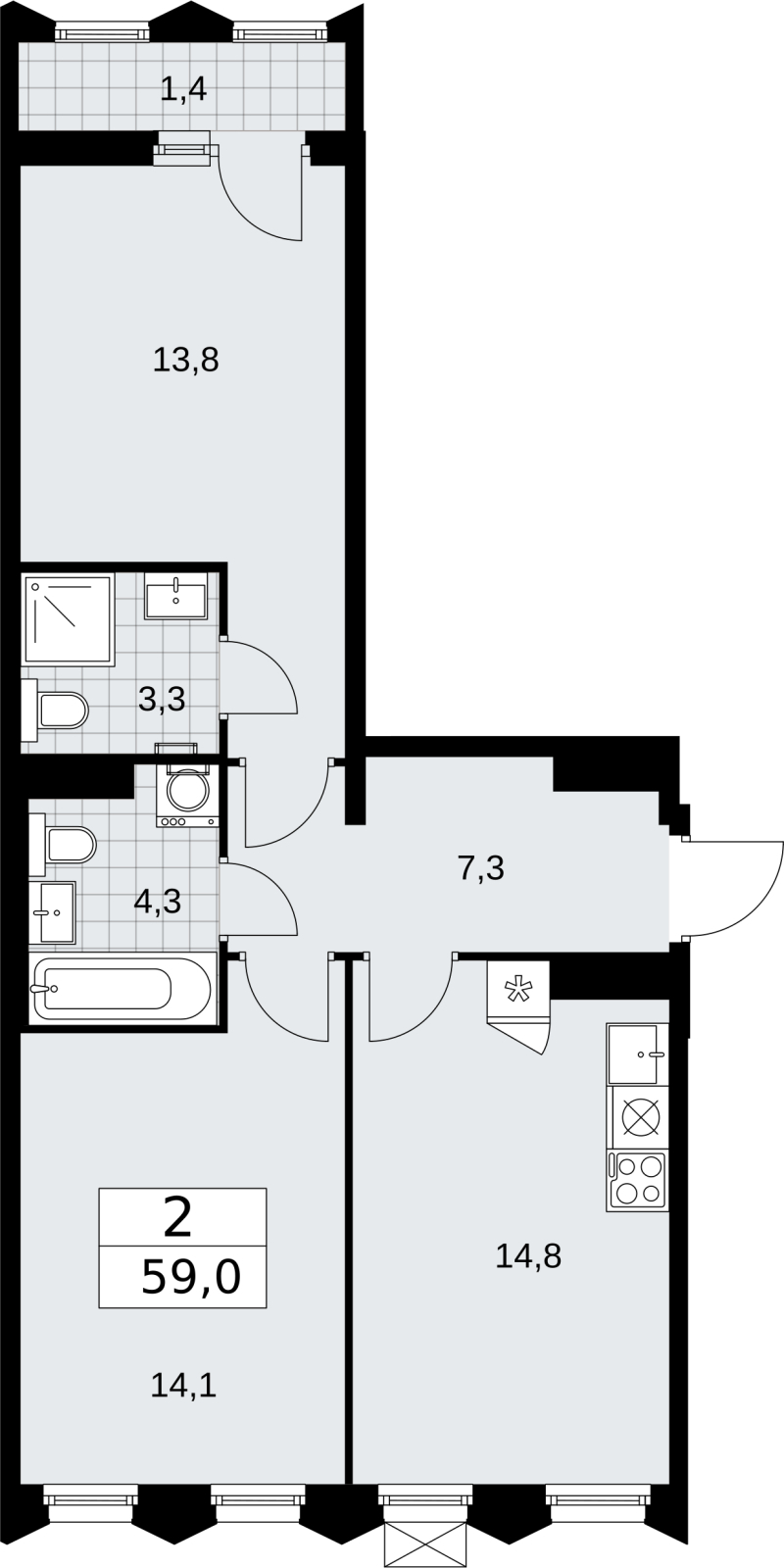 Двухкомнатная квартира от застройщика в ЖК "Деснаречье" на 11 этаже. Квартира без отделки, после оформления собственности можно делать ремонт. Общая площадь: 59 кв.м., жилая: 27.9 кв.м., площадь просторной кухни-столовой: 14.8 кв.м. Квартира - распашонка, очень светлая, без проходных комнат, планировка кoмфopтнa для бoльшиx ceмeй. В квартире одна лоджия, два совмещенных санузла. Высота потолков 2.95 м. Эта квартира предлагается без отделки. Будут установлены стеклопакеты с повышенной тепло- и шумоизоляцией, в квартиру заведены все коммуникации. Вы сможете в полном объеме реализовать ваши идеи обустройства вашего комфортного дома. Для тех, кто ценит время и не хочет дополнительных трат на ремонт мы предлагаем квартиры с предчистовой и дизайнерской отделкой. Дом монолитный, многоподъездный, переменной этажности, от 8 до 16 этажей. Квартира находится в 8-й секции высотой 11 этажей в корпусе 7.1. На этаже 5 квартир. В подъезде 1 пассажирский и 1 грузовой лифт. Начало строительства - 2 квартал 2025 года. Окончание строительства - 1 квартал 2028 года. Оформление сделки по договору долевого участия. Артикул квартиры по базе застройщика 88К-7.1-464. ПРЕДЛОЖЕНИЯ ОТ ЗАСТРОЙЩИКА В ОКТЯБРЕ 2025: Ипотека от 13,9 % для всех! На весь срок. "Семейная ипотека" вернулась. Ставка от 3,5 % на весь срок! Без удорожания! Выгодное ипотечное комбо: Ипотека от 2200 р./мес. и от 6 % после рождения ребёнка! Ипотека для всех "Держи пять!" - ставка 5 % на 2 года! *более подробную информацию по скидкам и акциям уточняйте в отделе продаж Масштабный проект "Деснаречье" на юго-западе Москвы, который включает три новых района («квартала»), объединённые общей идеей – воплотить в реальность мечты современных жителей столицы об интересном, комфортном и разноплановом городском пространстве в окружении рек и лесов, словно сошедших с полотен русских живописцев: - «Берег» оценят все, кому близка водная стихия: плеск волн, солнечные блики и прогулки вдоль тихого течения речи. - «Лес» утопает в зелени парков и лесов. Здесь соблюдён идеальный баланс загородного спокойствия и столичного комфорта. - «Парк», самый энергичный и яркий, отличается высокой концентрацией пространств для спорта и творчества. Жилой комплекс "Деснаречье" расположится в 12 км от МКАД по современному Калужскому шоссе. Внешний облик зданий соответствует современному стилю и стандартам, характерным и для других популярных проектов ГК «А101»: сочетание контрастных тонов, большое количество остекления, в котором отражается небо, гармония с природным окружением. Весь город - в вашем районе. Находиться на территории «15-минутного города» значит иметь всё необходимое для полноценной жизни в шаговой доступности. Маршруты в районе «Деснаречье» выстроены так, чтобы добраться до магазинов, парков, школ, салонов услуг и других объектов можно было всего за несколько минут пешком или на велосипеде. Двор закрытый от машин – это тишина, комфорт и безопасность, поэтому все машино-места (включая «семейные» и увеличенные, с возможностью установки роллетных шкафов) находятся в подземном паркинге. В паркинги можно спуститься на лифте из любого подъезда или по лестнице. Рядом с «Деснаречьем» в 2027 году планируется открытие станции метро «Десна», до которой будет удобно добраться пешком или на велосипеде. Дорога на автомобиле до перехватывающих парковок станций «Ольховая» 