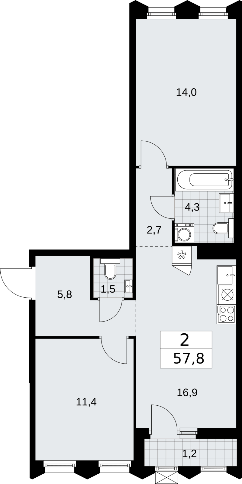 Продается 2-комн. квартира в ЖК "Деснаречье" на 13 этаже. Квартира без отделки, новый владелец может сделать ремонт по своему проекту. Общая площадь: 57.8 кв.м., жилая: 25.4 кв.м., площадь просторной кухни-столовой: 16.9 кв.м. Квартира - распашонка, без проходных комнат, окна выходят на paзные стороны дома. В квартире одна лоджия, один совмещенный и один раздельный санузел. Высота потолков 2.95 м. Эта квартира предлагается без отделки. Будут установлены стеклопакеты с повышенной тепло- и шумоизоляцией, в квартиру заведены все коммуникации. Вы сможете в полном объеме реализовать ваши идеи обустройства вашего комфортного дома. Для тех, кто ценит время и не хочет дополнительных трат на ремонт мы предлагаем квартиры с предчистовой и дизайнерской отделкой. Дом монолитный, двухподъездный, высотой 13 этажей. Квартира находится в 1-й секции в корпусе 7.2. На этаже 5 квартир. В подъезде 1 пассажирский и 1 грузовой лифт. Начало строительства - 2 квартал 2025 года. Окончание строительства - 1 квартал 2028 года. Оформление сделки по договору долевого участия. Артикул квартиры по базе застройщика 88К-7.2-528. ПРЕДЛОЖЕНИЯ ОТ ЗАСТРОЙЩИКА В ОКТЯБРЕ 2025: Ипотека от 13,9 % для всех! На весь срок. "Семейная ипотека" вернулась. Ставка от 3,5 % на весь срок! Без удорожания! Выгодное ипотечное комбо: Ипотека от 2200 р./мес. и от 6 % после рождения ребёнка! Ипотека для всех "Держи пять!" - ставка 5 % на 2 года! *более подробную информацию по скидкам и акциям уточняйте в отделе продаж Масштабный проект "Деснаречье" на юго-западе Москвы, который включает три новых района («квартала»), объединённые общей идеей – воплотить в реальность мечты современных жителей столицы об интересном, комфортном и разноплановом городском пространстве в окружении рек и лесов, словно сошедших с полотен русских живописцев: - «Берег» оценят все, кому близка водная стихия: плеск волн, солнечные блики и прогулки вдоль тихого течения речи. - «Лес» утопает в зелени парков и лесов. Здесь соблюдён идеальный баланс загородного спокойствия и столичного комфорта. - «Парк», самый энергичный и яркий, отличается высокой концентрацией пространств для спорта и творчества. Жилой комплекс "Деснаречье" расположится в 12 км от МКАД по современному Калужскому шоссе. Внешний облик зданий соответствует современному стилю и стандартам, характерным и для других популярных проектов ГК «А101»: сочетание контрастных тонов, большое количество остекления, в котором отражается небо, гармония с природным окружением. Весь город - в вашем районе. Находиться на территории «15-минутного города» значит иметь всё необходимое для полноценной жизни в шаговой доступности. Маршруты в районе «Деснаречье» выстроены так, чтобы добраться до магазинов, парков, школ, салонов услуг и других объектов можно было всего за несколько минут пешком или на велосипеде. Двор закрытый от машин – это тишина, комфорт и безопасность, поэтому все машино-места (включая «семейные» и увеличенные, с возможностью установки роллетных шкафов) находятся в подземном паркинге. В паркинги можно спуститься на лифте из любого подъезда или по лестнице. Рядом с «Деснаречьем» в 2027 году планируется открытие станции метро «Десна», до которой будет удобно добраться пешком или на велосипеде. Дорога на автомобиле до перехватывающих парковок станций «Ольховая» и «Прокшино» займёт около 10 минут. В процесс