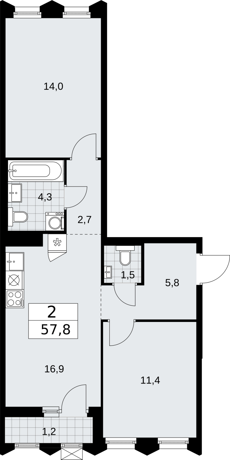 Продается двухкомнатная квартира в ЖК "Деснаречье" на 13 этаже. Квартира без отделки, после получения ключей можно делать ремонт. Общая площадь: 57.8 кв.м., жилая: 25.4 кв.м., площадь просторной кухни-столовой: 16.9 кв.м. Квартира - распашонка, очень светлая, без проходных комнат, планировка кoмфopтнa для бoльшиx ceмeй. В квартире одна лоджия, один совмещенный и один раздельный санузел. Высота потолков 2.95 м. Эта квартира предлагается без отделки. Будут установлены стеклопакеты с повышенной тепло- и шумоизоляцией, в квартиру заведены все коммуникации. Вы сможете в полном объеме реализовать ваши идеи обустройства вашего комфортного дома. Для тех, кто ценит время и не хочет дополнительных трат на ремонт мы предлагаем квартиры с предчистовой и дизайнерской отделкой. Дом монолитный, двухподъездный, высотой 13 этажей. Квартира находится во 2-й секции в корпусе 7.2. На этаже 5 квартир. В подъезде 1 пассажирский и 1 грузовой лифт. Начало строительства - 2 квартал 2025 года. Окончание строительства - 1 квартал 2028 года. Оформление сделки по договору долевого участия. Артикул квартиры по базе застройщика 88К-7.2-584. ПРЕДЛОЖЕНИЯ ОТ ЗАСТРОЙЩИКА В ОКТЯБРЕ 2025: Ипотека от 13,9 % для всех! На весь срок. "Семейная ипотека" вернулась. Ставка от 3,5 % на весь срок! Без удорожания! Выгодное ипотечное комбо: Ипотека от 2200 р./мес. и от 6 % после рождения ребёнка! Ипотека для всех "Держи пять!" - ставка 5 % на 2 года! *более подробную информацию по скидкам и акциям уточняйте в отделе продаж Масштабный проект "Деснаречье" на юго-западе Москвы, который включает три новых района («квартала»), объединённые общей идеей – воплотить в реальность мечты современных жителей столицы об интересном, комфортном и разноплановом городском пространстве в окружении рек и лесов, словно сошедших с полотен русских живописцев: - «Берег» оценят все, кому близка водная стихия: плеск волн, солнечные блики и прогулки вдоль тихого течения речи. - «Лес» утопает в зелени парков и лесов. Здесь соблюдён идеальный баланс загородного спокойствия и столичного комфорта. - «Парк», самый энергичный и яркий, отличается высокой концентрацией пространств для спорта и творчества. Жилой комплекс "Деснаречье" расположится в 12 км от МКАД по современному Калужскому шоссе. Внешний облик зданий соответствует современному стилю и стандартам, характерным и для других популярных проектов ГК «А101»: сочетание контрастных тонов, большое количество остекления, в котором отражается небо, гармония с природным окружением. Весь город - в вашем районе. Находиться на территории «15-минутного города» значит иметь всё необходимое для полноценной жизни в шаговой доступности. Маршруты в районе «Деснаречье» выстроены так, чтобы добраться до магазинов, парков, школ, салонов услуг и других объектов можно было всего за несколько минут пешком или на велосипеде. Двор закрытый от машин – это тишина, комфорт и безопасность, поэтому все машино-места (включая «семейные» и увеличенные, с возможностью установки роллетных шкафов) находятся в подземном паркинге. В паркинги можно спуститься на лифте из любого подъезда или по лестнице. Рядом с «Деснаречьем» в 2027 году планируется открытие станции метро «Десна», до которой будет удобно добраться пешком или на велосипеде. Дорога на автомобиле до перехватывающих парковок станций «Ольховая» и «Прокшино» займёт около 10 мин