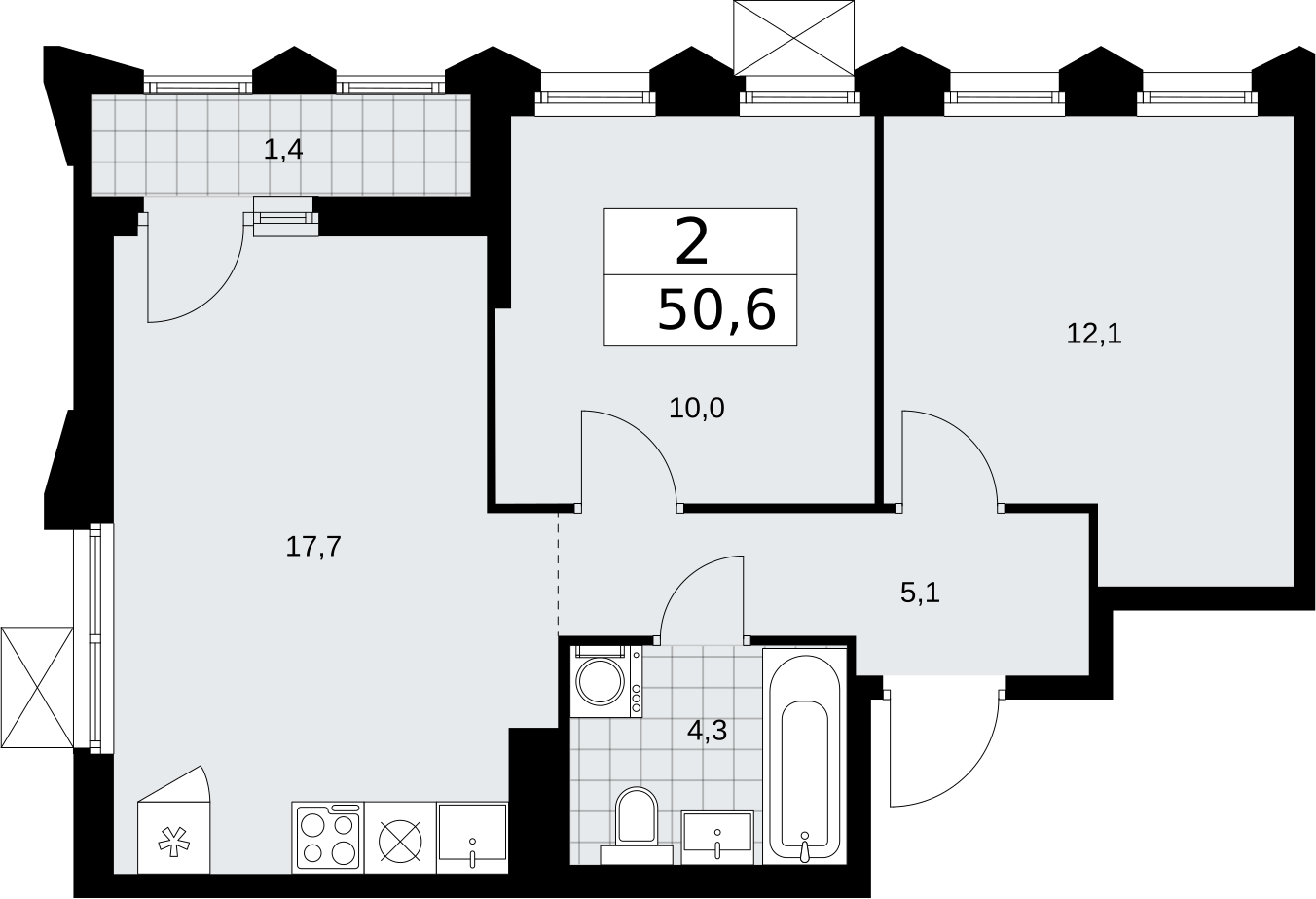 2-комн. квартира от застройщика в ЖК "Деснаречье" на 13 этаже. Квартира без отделки, после оформления собственности можно делать ремонт. Общая площадь: 50.6 кв.м., жилая: 22.1 кв.м., площадь просторной кухни-столовой: 17.7 кв.м. Квартира угловая, идеально подойдет любителям тишины и панорамных видов. В квартире одна лоджия, один совмещенный санузел. Высота потолков 2.95 м. Эта квартира предлагается без отделки. Будут установлены стеклопакеты с повышенной тепло- и шумоизоляцией, в квартиру заведены все коммуникации. Вы сможете в полном объеме реализовать ваши идеи обустройства вашего комфортного дома. Для тех, кто ценит время и не хочет дополнительных трат на ремонт мы предлагаем квартиры с предчистовой и дизайнерской отделкой. Дом монолитный, черырехподъездный, переменной этажности, от 9 до 17 этажей. Квартира находится в 1-й секции высотой 15 этажей в корпусе 7.3. На этаже 5 квартир. В подъезде 1 пассажирский и 1 грузовой лифт. Начало строительства - 2 квартал 2025 года. Окончание строительства - 1 квартал 2028 года. Оформление сделки по договору долевого участия. Артикул квартиры по базе застройщика 88К-7.3-648. ПРЕДЛОЖЕНИЯ ОТ ЗАСТРОЙЩИКА В ОКТЯБРЕ 2025: Ипотека от 13,9 % для всех! На весь срок. "Семейная ипотека" вернулась. Ставка от 3,5 % на весь срок! Без удорожания! Выгодное ипотечное комбо: Ипотека от 2200 р./мес. и от 6 % после рождения ребёнка! Ипотека для всех "Держи пять!" - ставка 5 % на 2 года! *более подробную информацию по скидкам и акциям уточняйте в отделе продаж Масштабный проект "Деснаречье" на юго-западе Москвы, который включает три новых района («квартала»), объединённые общей идеей – воплотить в реальность мечты современных жителей столицы об интересном, комфортном и разноплановом городском пространстве в окружении рек и лесов, словно сошедших с полотен русских живописцев: - «Берег» оценят все, кому близка водная стихия: плеск волн, солнечные блики и прогулки вдоль тихого течения речи. - «Лес» утопает в зелени парков и лесов. Здесь соблюдён идеальный баланс загородного спокойствия и столичного комфорта. - «Парк», самый энергичный и яркий, отличается высокой концентрацией пространств для спорта и творчества. Жилой комплекс "Деснаречье" расположится в 12 км от МКАД по современному Калужскому шоссе. Внешний облик зданий соответствует современному стилю и стандартам, характерным и для других популярных проектов ГК «А101»: сочетание контрастных тонов, большое количество остекления, в котором отражается небо, гармония с природным окружением. Весь город - в вашем районе. Находиться на территории «15-минутного города» значит иметь всё необходимое для полноценной жизни в шаговой доступности. Маршруты в районе «Деснаречье» выстроены так, чтобы добраться до магазинов, парков, школ, салонов услуг и других объектов можно было всего за несколько минут пешком или на велосипеде. Двор закрытый от машин – это тишина, комфорт и безопасность, поэтому все машино-места (включая «семейные» и увеличенные, с возможностью установки роллетных шкафов) находятся в подземном паркинге. В паркинги можно спуститься на лифте из любого подъезда или по лестнице. Рядом с «Деснаречьем» в 2027 году планируется открытие станции метро «Десна», до которой будет удобно добраться пешком или на велосипеде. Дорога на автомобиле до перехватывающих парковок станций «Ольховая» и «Прокшино» займёт окол