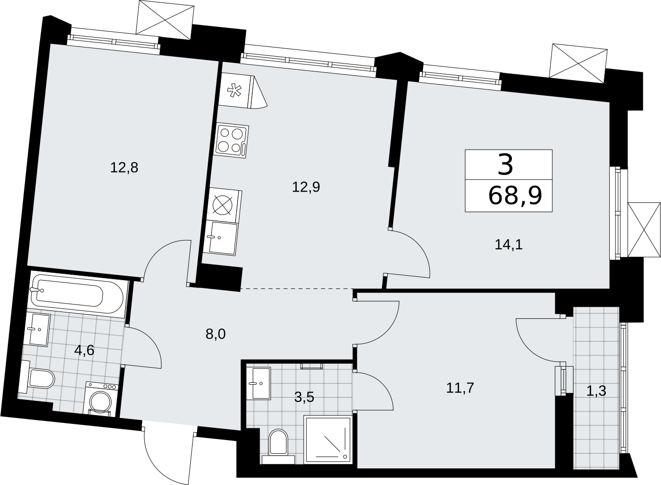 Продается 3-комн. квартира в ЖК "Деснаречье" на 6 этаже. Квартира без отделки, новый собственник может сделать ремонт по индивидуальному проекту. Общая площадь: 68.9 кв.м., жилая: 38.6 кв.м., площадь просторной кухни-столовой: 12.9 кв.м. Квартира угловая, идеально подойдет любителям тишины и панорамных видов. В квартире одна лоджия, два совмещенных санузла. Высота потолков 2.95 м. Эта квартира предлагается без отделки. Будут установлены стеклопакеты с повышенной тепло- и шумоизоляцией, в квартиру заведены все коммуникации. Вы сможете в полном объеме реализовать ваши идеи обустройства вашего комфортного дома. Для тех, кто ценит время и не хочет дополнительных трат на ремонт мы предлагаем квартиры с предчистовой и дизайнерской отделкой. Дом монолитный, черырехподъездный, переменной этажности, от 9 до 17 этажей. Квартира находится в 3-й секции высотой 17 этажей в корпусе 7.3. На этаже 5 квартир. В подъезде 1 пассажирский и 1 грузовой лифт. Начало строительства - 2 квартал 2025 года. Окончание строительства - 1 квартал 2028 года. Оформление сделки по договору долевого участия. Артикул квартиры по базе застройщика 88К-7.3-725. ПРЕДЛОЖЕНИЯ ОТ ЗАСТРОЙЩИКА В ОКТЯБРЕ 2025: Ипотека от 13,9 % для всех! На весь срок. "Семейная ипотека" вернулась. Ставка от 3,5 % на весь срок! Без удорожания! Выгодное ипотечное комбо: Ипотека от 2200 р./мес. и от 6 % после рождения ребёнка! Ипотека для всех "Держи пять!" - ставка 5 % на 2 года! *более подробную информацию по скидкам и акциям уточняйте в отделе продаж Масштабный проект "Деснаречье" на юго-западе Москвы, который включает три новых района («квартала»), объединённые общей идеей – воплотить в реальность мечты современных жителей столицы об интересном, комфортном и разноплановом городском пространстве в окружении рек и лесов, словно сошедших с полотен русских живописцев: - «Берег» оценят все, кому близка водная стихия: плеск волн, солнечные блики и прогулки вдоль тихого течения речи. - «Лес» утопает в зелени парков и лесов. Здесь соблюдён идеальный баланс загородного спокойствия и столичного комфорта. - «Парк», самый энергичный и яркий, отличается высокой концентрацией пространств для спорта и творчества. Жилой комплекс "Деснаречье" расположится в 12 км от МКАД по современному Калужскому шоссе. Внешний облик зданий соответствует современному стилю и стандартам, характерным и для других популярных проектов ГК «А101»: сочетание контрастных тонов, большое количество остекления, в котором отражается небо, гармония с природным окружением. Весь город - в вашем районе. Находиться на территории «15-минутного города» значит иметь всё необходимое для полноценной жизни в шаговой доступности. Маршруты в районе «Деснаречье» выстроены так, чтобы добраться до магазинов, парков, школ, салонов услуг и других объектов можно было всего за несколько минут пешком или на велосипеде. Двор закрытый от машин – это тишина, комфорт и безопасность, поэтому все машино-места (включая «семейные» и увеличенные, с возможностью установки роллетных шкафов) находятся в подземном паркинге. В паркинги можно спуститься на лифте из любого подъезда или по лестнице. Рядом с «Деснаречьем» в 2027 году планируется открытие станции метро «Десна», до которой будет удобно добраться пешком или на велосипеде. Дорога на автомобиле до перехватывающих парковок станций «Ольховая» и «Прокшино» за