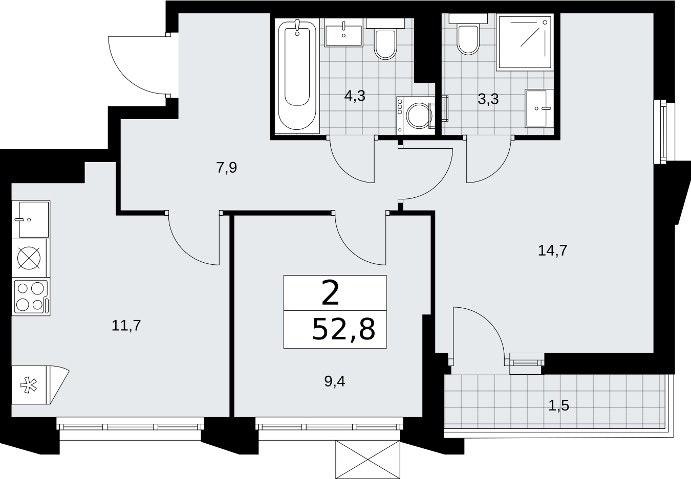 Двухкомнатная квартира от застройщика в ЖК "Деснаречье" на 13 этаже. Квартира без отделки, новый собственник может сделать ремонт по индивидуальному дизайн-проекту. Общая площадь: 52.8 кв.м., жилая: 24.1 кв.м., площадь просторной кухни-столовой: 11.7 кв.м. Угловая квартира, идеально подойдет любителям тишины и панорамных видов. В квартире одна лоджия, два совмещенных санузла. Высота потолков 2.95 м. Эта квартира предлагается без отделки. Будут установлены стеклопакеты с повышенной тепло- и шумоизоляцией, в квартиру заведены все коммуникации. Вы сможете в полном объеме реализовать ваши идеи обустройства вашего комфортного дома. Для тех, кто ценит время и не хочет дополнительных трат на ремонт мы предлагаем квартиры с предчистовой и дизайнерской отделкой. Дом монолитный, черырехподъездный, переменной этажности, от 9 до 17 этажей. Квартира находится в 4-й секции высотой 16 этажей в корпусе 7.3. На этаже 5 квартир. В подъезде 1 пассажирский и 1 грузовой лифт. Начало строительства - 2 квартал 2025 года. Окончание строительства - 1 квартал 2028 года. Оформление сделки по договору долевого участия. Артикул квартиры по базе застройщика 88К-7.3-854. ПРЕДЛОЖЕНИЯ ОТ ЗАСТРОЙЩИКА В ОКТЯБРЕ 2025: Ипотека от 13,9 % для всех! На весь срок. "Семейная ипотека" вернулась. Ставка от 3,5 % на весь срок! Без удорожания! Выгодное ипотечное комбо: Ипотека от 2200 р./мес. и от 6 % после рождения ребёнка! Ипотека для всех "Держи пять!" - ставка 5 % на 2 года! *более подробную информацию по скидкам и акциям уточняйте в отделе продаж Масштабный проект "Деснаречье" на юго-западе Москвы, который включает три новых района («квартала»), объединённые общей идеей – воплотить в реальность мечты современных жителей столицы об интересном, комфортном и разноплановом городском пространстве в окружении рек и лесов, словно сошедших с полотен русских живописцев: - «Берег» оценят все, кому близка водная стихия: плеск волн, солнечные блики и прогулки вдоль тихого течения речи. - «Лес» утопает в зелени парков и лесов. Здесь соблюдён идеальный баланс загородного спокойствия и столичного комфорта. - «Парк», самый энергичный и яркий, отличается высокой концентрацией пространств для спорта и творчества. Жилой комплекс "Деснаречье" расположится в 12 км от МКАД по современному Калужскому шоссе. Внешний облик зданий соответствует современному стилю и стандартам, характерным и для других популярных проектов ГК «А101»: сочетание контрастных тонов, большое количество остекления, в котором отражается небо, гармония с природным окружением. Весь город - в вашем районе. Находиться на территории «15-минутного города» значит иметь всё необходимое для полноценной жизни в шаговой доступности. Маршруты в районе «Деснаречье» выстроены так, чтобы добраться до магазинов, парков, школ, салонов услуг и других объектов можно было всего за несколько минут пешком или на велосипеде. Двор закрытый от машин – это тишина, комфорт и безопасность, поэтому все машино-места (включая «семейные» и увеличенные, с возможностью установки роллетных шкафов) находятся в подземном паркинге. В паркинги можно спуститься на лифте из любого подъезда или по лестнице. Рядом с «Деснаречьем» в 2027 году планируется открытие станции метро «Десна», до которой будет удобно добраться пешком или на велосипеде. Дорога на автомобиле до перехватывающих парковок станций «Ольхо