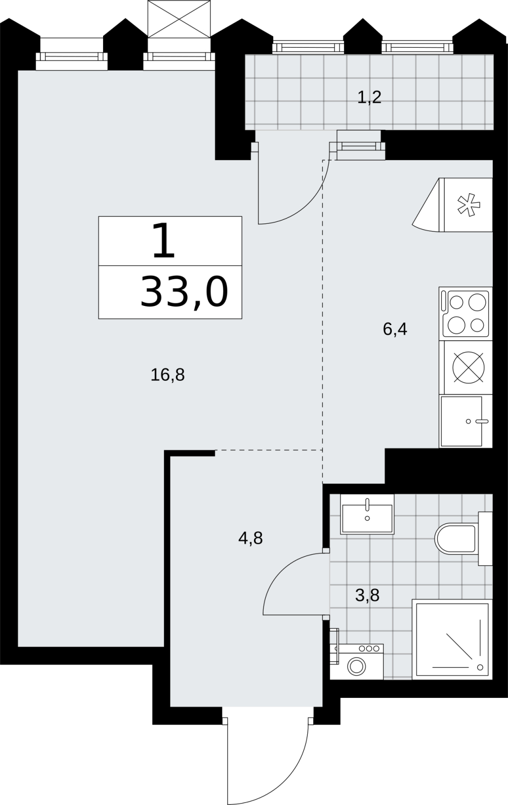 Продается 1-комн. квартира-студия с отделкой в ЖК "Деснаречье" на 11 этаже. Общая площадь: 33 кв.м., площадь гостиной 23.2 кв.м., из которых 6.4 кв.м. выделено под кухонную зону. Все окна выходят на одну сторону. В квартире одна лоджия, один совмещенный санузел. Высота потолков 2.95 м. Эта квартира будет сдана с дизайнеркой отделкой "под ключ". Специально для вас мы разработали несколько решений дизайнерской отделки. В отделке используются только современный высококлассные материалы, на все работы предоставляется гарантия. В таком случае вы оплачиваете отделку в сегодняшних ценах, а эту стоимость вы можете разнести в ипотечных платежах. Дом монолитный, трехподъездный, переменной этажности, от 11 до 17 этажей. Квартира находится в 1-й секции высотой 11 этажей в корпусе 7.5. На этаже 5 квартир. В подъезде 1 пассажирский и 1 грузовой лифт. Начало строительства - 2 квартал 2025 года. Окончание строительства - 1 квартал 2028 года. Оформление сделки по договору долевого участия. Артикул квартиры по базе застройщика 88К-7.5-1106. ПРЕДЛОЖЕНИЯ ОТ ЗАСТРОЙЩИКА В ОКТЯБРЕ 2025: Ипотека от 13,9 % для всех! На весь срок. "Семейная ипотека" вернулась. Ставка от 3,5 % на весь срок! Без удорожания! Выгодное ипотечное комбо: Ипотека от 2200 р./мес. и от 6 % после рождения ребёнка! Ипотека для всех "Держи пять!" - ставка 5 % на 2 года! *более подробную информацию по скидкам и акциям уточняйте в отделе продаж Масштабный проект "Деснаречье" на юго-западе Москвы, который включает три новых района («квартала»), объединённые общей идеей – воплотить в реальность мечты современных жителей столицы об интересном, комфортном и разноплановом городском пространстве в окружении рек и лесов, словно сошедших с полотен русских живописцев: - «Берег» оценят все, кому близка водная стихия: плеск волн, солнечные блики и прогулки вдоль тихого течения речи. - «Лес» утопает в зелени парков и лесов. Здесь соблюдён идеальный баланс загородного спокойствия и столичного комфорта. - «Парк», самый энергичный и яркий, отличается высокой концентрацией пространств для спорта и творчества. Жилой комплекс "Деснаречье" расположится в 12 км от МКАД по современному Калужскому шоссе. Внешний облик зданий соответствует современному стилю и стандартам, характерным и для других популярных проектов ГК «А101»: сочетание контрастных тонов, большое количество остекления, в котором отражается небо, гармония с природным окружением. Весь город - в вашем районе. Находиться на территории «15-минутного города» значит иметь всё необходимое для полноценной жизни в шаговой доступности. Маршруты в районе «Деснаречье» выстроены так, чтобы добраться до магазинов, парков, школ, салонов услуг и других объектов можно было всего за несколько минут пешком или на велосипеде. Двор закрытый от машин – это тишина, комфорт и безопасность, поэтому все машино-места (включая «семейные» и увеличенные, с возможностью установки роллетных шкафов) находятся в подземном паркинге. В паркинги можно спуститься на лифте из любого подъезда или по лестнице. Рядом с «Деснаречьем» в 2027 году планируется открытие станции метро «Десна», до которой будет удобно добраться пешком или на велосипеде. Дорога на автомобиле до перехватывающих парковок станций «Ольховая» и «Прокшино» займёт около 10 минут. В процессе реализации проекта будут появляться новые маршруты общественного трансп