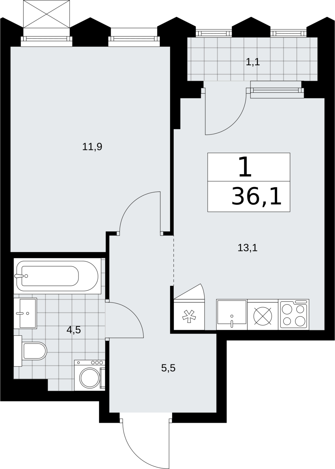 Просторная однокомнатная квартира с отделкой в ЖК "Деснаречье" на 9 этаже. Общая площадь: 36.1 кв.м., жилая: 11.9 кв.м., площадь просторной кухни-столовой: 13.1 кв.м. Все окна выходят на одну сторону. В квартире одна лоджия, один совмещенный санузел. Высота потолков 2.95 м. Эта квартира будет сдана с дизайнеркой отделкой "под ключ". Специально для вас мы разработали несколько решений дизайнерской отделки. В отделке используются только современный высококлассные материалы, на все работы предоставляется гарантия. В таком случае вы оплачиваете отделку в сегодняшних ценах, а эту стоимость вы можете разнести в ипотечных платежах. Дом монолитный, двухподъездный, высотой 11 этажей. Квартира находится во 2-й секции в корпусе 7.6. На этаже 5 квартир. В подъезде 1 пассажирский и 1 грузовой лифт. Начало строительства - 2 квартал 2025 года. Окончание строительства - 1 квартал 2028 года. Оформление сделки по договору долевого участия. Артикул квартиры по базе застройщика 88К-7.6-1301. ПРЕДЛОЖЕНИЯ ОТ ЗАСТРОЙЩИКА В ОКТЯБРЕ 2025: Ипотека от 13,9 % для всех! На весь срок. "Семейная ипотека" вернулась. Ставка от 3,5 % на весь срок! Без удорожания! Выгодное ипотечное комбо: Ипотека от 2200 р./мес. и от 6 % после рождения ребёнка! Ипотека для всех "Держи пять!" - ставка 5 % на 2 года! *более подробную информацию по скидкам и акциям уточняйте в отделе продаж Масштабный проект "Деснаречье" на юго-западе Москвы, который включает три новых района («квартала»), объединённые общей идеей – воплотить в реальность мечты современных жителей столицы об интересном, комфортном и разноплановом городском пространстве в окружении рек и лесов, словно сошедших с полотен русских живописцев: - «Берег» оценят все, кому близка водная стихия: плеск волн, солнечные блики и прогулки вдоль тихого течения речи. - «Лес» утопает в зелени парков и лесов. Здесь соблюдён идеальный баланс загородного спокойствия и столичного комфорта. - «Парк», самый энергичный и яркий, отличается высокой концентрацией пространств для спорта и творчества. Жилой комплекс "Деснаречье" расположится в 12 км от МКАД по современному Калужскому шоссе. Внешний облик зданий соответствует современному стилю и стандартам, характерным и для других популярных проектов ГК «А101»: сочетание контрастных тонов, большое количество остекления, в котором отражается небо, гармония с природным окружением. Весь город - в вашем районе. Находиться на территории «15-минутного города» значит иметь всё необходимое для полноценной жизни в шаговой доступности. Маршруты в районе «Деснаречье» выстроены так, чтобы добраться до магазинов, парков, школ, салонов услуг и других объектов можно было всего за несколько минут пешком или на велосипеде. Двор закрытый от машин – это тишина, комфорт и безопасность, поэтому все машино-места (включая «семейные» и увеличенные, с возможностью установки роллетных шкафов) находятся в подземном паркинге. В паркинги можно спуститься на лифте из любого подъезда или по лестнице. Рядом с «Деснаречьем» в 2027 году планируется открытие станции метро «Десна», до которой будет удобно добраться пешком или на велосипеде. Дорога на автомобиле до перехватывающих парковок станций «Ольховая» и «Прокшино» займёт около 10 минут. В процессе реализации проекта будут появляться новые маршруты общественного транспорта по районам. Уже сейчас на Калужском шоссе р