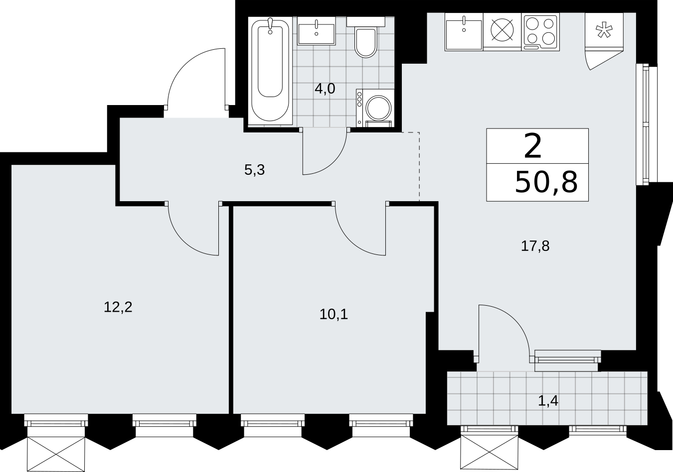 Продается 2-комн. квартира от застройщика с отделкой в ЖК "Деснаречье" на 10 этаже. Общая площадь: 50.8 кв.м., жилая: 22.3 кв.м., площадь просторной кухни-столовой: 17.8 кв.м. Квартира угловая, очень светлая, естественная вентиляция при открытии окон. В квартире одна лоджия, один совмещенный санузел. Высота потолков 2.95 м. Эта квартира будет сдана с дизайнеркой отделкой "под ключ". Специально для вас мы разработали несколько решений дизайнерской отделки. В отделке используются только современный высококлассные материалы, на все работы предоставляется гарантия. В таком случае вы оплачиваете отделку в сегодняшних ценах, а эту стоимость вы можете разнести в ипотечных платежах. Дом монолитный, двухподъездный, высотой 11 этажей. Квартира находится во 2-й секции в корпусе 7.6. На этаже 5 квартир. В подъезде 1 пассажирский и 1 грузовой лифт. Начало строительства - 2 квартал 2025 года. Окончание строительства - 1 квартал 2028 года. Оформление сделки по договору долевого участия. Артикул квартиры по базе застройщика 88К-7.6-1308. ПРЕДЛОЖЕНИЯ ОТ ЗАСТРОЙЩИКА В ОКТЯБРЕ 2025: Ипотека от 13,9 % для всех! На весь срок. "Семейная ипотека" вернулась. Ставка от 3,5 % на весь срок! Без удорожания! Выгодное ипотечное комбо: Ипотека от 2200 р./мес. и от 6 % после рождения ребёнка! Ипотека для всех "Держи пять!" - ставка 5 % на 2 года! *более подробную информацию по скидкам и акциям уточняйте в отделе продаж Масштабный проект "Деснаречье" на юго-западе Москвы, который включает три новых района («квартала»), объединённые общей идеей – воплотить в реальность мечты современных жителей столицы об интересном, комфортном и разноплановом городском пространстве в окружении рек и лесов, словно сошедших с полотен русских живописцев: - «Берег» оценят все, кому близка водная стихия: плеск волн, солнечные блики и прогулки вдоль тихого течения речи. - «Лес» утопает в зелени парков и лесов. Здесь соблюдён идеальный баланс загородного спокойствия и столичного комфорта. - «Парк», самый энергичный и яркий, отличается высокой концентрацией пространств для спорта и творчества. Жилой комплекс "Деснаречье" расположится в 12 км от МКАД по современному Калужскому шоссе. Внешний облик зданий соответствует современному стилю и стандартам, характерным и для других популярных проектов ГК «А101»: сочетание контрастных тонов, большое количество остекления, в котором отражается небо, гармония с природным окружением. Весь город - в вашем районе. Находиться на территории «15-минутного города» значит иметь всё необходимое для полноценной жизни в шаговой доступности. Маршруты в районе «Деснаречье» выстроены так, чтобы добраться до магазинов, парков, школ, салонов услуг и других объектов можно было всего за несколько минут пешком или на велосипеде. Двор закрытый от машин – это тишина, комфорт и безопасность, поэтому все машино-места (включая «семейные» и увеличенные, с возможностью установки роллетных шкафов) находятся в подземном паркинге. В паркинги можно спуститься на лифте из любого подъезда или по лестнице. Рядом с «Деснаречьем» в 2027 году планируется открытие станции метро «Десна», до которой будет удобно добраться пешком или на велосипеде. Дорога на автомобиле до перехватывающих парковок станций «Ольховая» и «Прокшино» займёт около 10 минут. В процессе реализации проекта будут появляться новые маршруты общественного тран