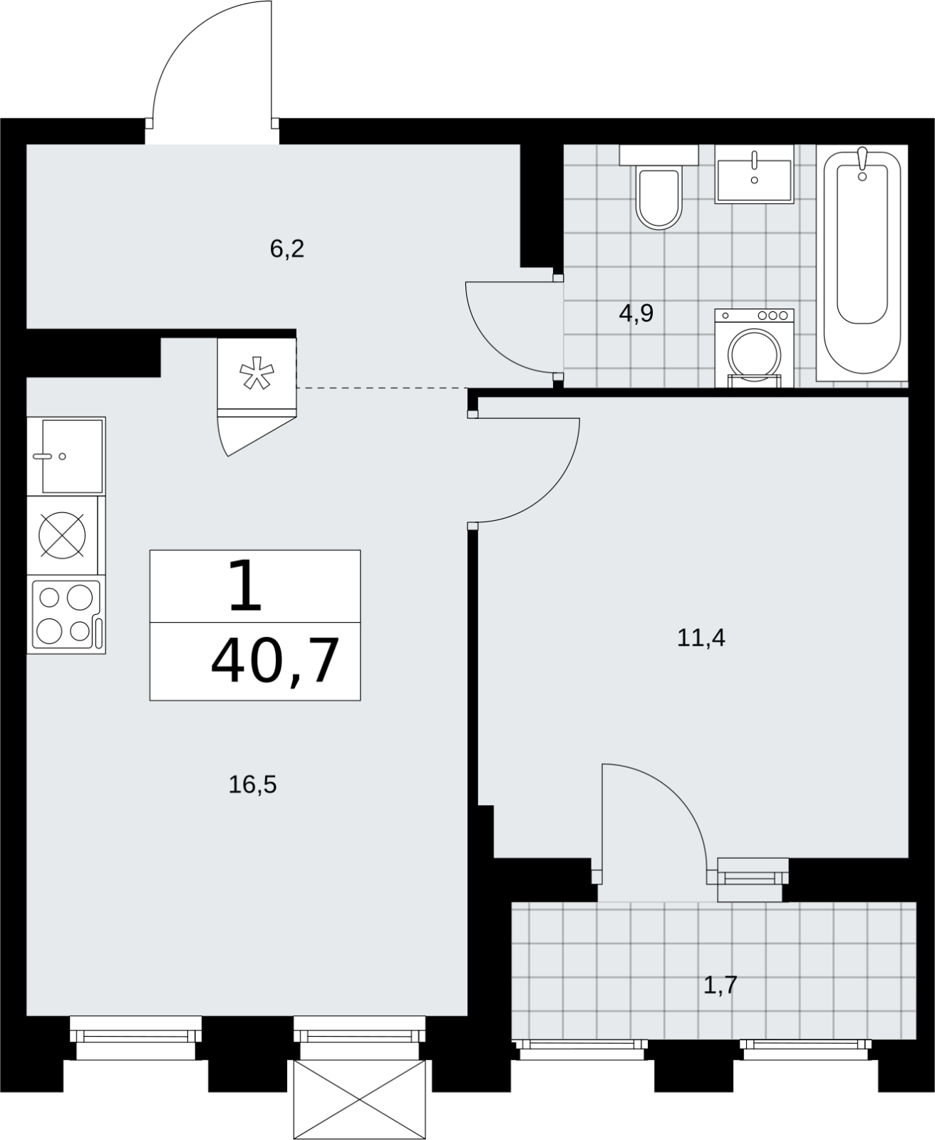Продается 1-комн. квартира с отделкой в ЖК "Деснаречье" на 20 этаже. Общая площадь: 40.7 кв.м., жилая: 11.4 кв.м., площадь просторной кухни-столовой: 16.5 кв.м. Все окна выходят на одну сторону. В квартире одна лоджия, один совмещенный санузел. Высота потолков 2.95 м. Эта квартира будет сдана с дизайнеркой отделкой "под ключ". Специально для вас мы разработали несколько решений дизайнерской отделки. В отделке используются только современный высококлассные материалы, на все работы предоставляется гарантия. В таком случае вы оплачиваете отделку в сегодняшних ценах, а эту стоимость вы можете разнести в ипотечных платежах. Квартира находится в корпусе 7.7. Дом монолитный, одноподъездный, высотой 22 этажа. На этаже 9 квартир. В подъезде 1 пассажирский и 2 грузовых лифта. Начало строительства - 2 квартал 2025 года. Окончание строительства - 1 квартал 2028 года. Оформление сделки по договору долевого участия. Артикул квартиры по базе застройщика 88К-7.7-1484. ПРЕДЛОЖЕНИЯ ОТ ЗАСТРОЙЩИКА В ОКТЯБРЕ 2025: Ипотека от 13,9 % для всех! На весь срок. "Семейная ипотека" вернулась. Ставка от 3,5 % на весь срок! Без удорожания! Выгодное ипотечное комбо: Ипотека от 2200 р./мес. и от 6 % после рождения ребёнка! Ипотека для всех "Держи пять!" - ставка 5 % на 2 года! *более подробную информацию по скидкам и акциям уточняйте в отделе продаж Масштабный проект "Деснаречье" на юго-западе Москвы, который включает три новых района («квартала»), объединённые общей идеей – воплотить в реальность мечты современных жителей столицы об интересном, комфортном и разноплановом городском пространстве в окружении рек и лесов, словно сошедших с полотен русских живописцев: - «Берег» оценят все, кому близка водная стихия: плеск волн, солнечные блики и прогулки вдоль тихого течения речи. - «Лес» утопает в зелени парков и лесов. Здесь соблюдён идеальный баланс загородного спокойствия и столичного комфорта. - «Парк», самый энергичный и яркий, отличается высокой концентрацией пространств для спорта и творчества. Жилой комплекс "Деснаречье" расположится в 12 км от МКАД по современному Калужскому шоссе. Внешний облик зданий соответствует современному стилю и стандартам, характерным и для других популярных проектов ГК «А101»: сочетание контрастных тонов, большое количество остекления, в котором отражается небо, гармония с природным окружением. Весь город - в вашем районе. Находиться на территории «15-минутного города» значит иметь всё необходимое для полноценной жизни в шаговой доступности. Маршруты в районе «Деснаречье» выстроены так, чтобы добраться до магазинов, парков, школ, салонов услуг и других объектов можно было всего за несколько минут пешком или на велосипеде. Двор закрытый от машин – это тишина, комфорт и безопасность, поэтому все машино-места (включая «семейные» и увеличенные, с возможностью установки роллетных шкафов) находятся в подземном паркинге. В паркинги можно спуститься на лифте из любого подъезда или по лестнице. Рядом с «Деснаречьем» в 2027 году планируется открытие станции метро «Десна», до которой будет удобно добраться пешком или на велосипеде. Дорога на автомобиле до перехватывающих парковок станций «Ольховая» и «Прокшино» займёт около 10 минут. В процессе реализации проекта будут появляться новые маршруты общественного транспорта по районам. Уже сейчас на Калужском шоссе развита сеть наземного