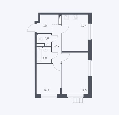 - Общая площадь 53.6 м²