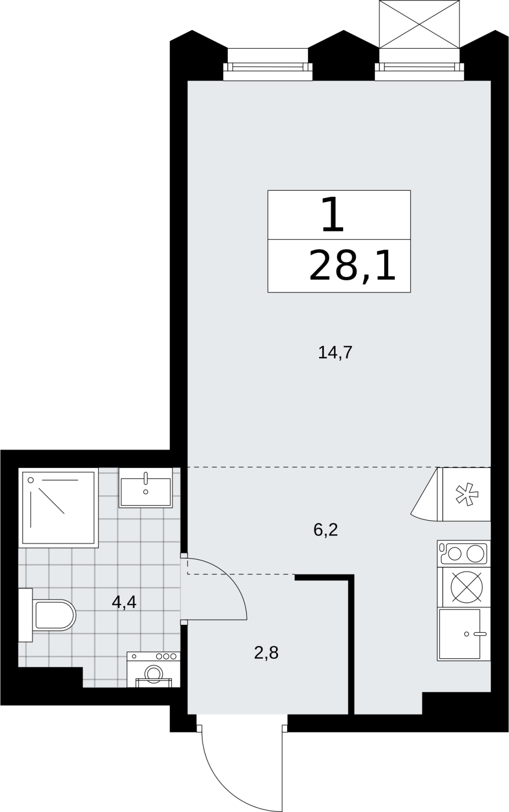 Продается однокомнатная квартира-студия с отделкой в ЖК "Деснаречье" на 5 этаже. Общая площадь: 28.1 кв.м., площадь гостиной 20.9 кв.м., из которых 6.2 кв.м. выделено под кухонную зону. Все окна выходят на одну сторону. В квартире один совмещенный санузел. Высота потолков 2.95 м. Эта квартира будет сдана с дизайнеркой отделкой "под ключ". Специально для вас мы разработали несколько решений дизайнерской отделки. В отделке используются только современный высококлассные материалы, на все работы предоставляется гарантия. В таком случае вы оплачиваете отделку в сегодняшних ценах, а эту стоимость вы можете разнести в ипотечных платежах. Дом монолитный, двухподъездный, высотой 11 этажей. Квартира находится в 1-й секции в корпусе 7.6. На этаже 5 квартир. В подъезде 1 пассажирский и 1 грузовой лифт. Начало строительства - 2 квартал 2025 года. Окончание строительства - 1 квартал 2028 года. Оформление сделки по договору долевого участия. Артикул квартиры по базе застройщика 88К-7.6-1231. ПРЕДЛОЖЕНИЯ ОТ ЗАСТРОЙЩИКА В ОКТЯБРЕ 2025: Ипотека от 13,9 % для всех! На весь срок. "Семейная ипотека" вернулась. Ставка от 3,5 % на весь срок! Без удорожания! Выгодное ипотечное комбо: Ипотека от 2200 р./мес. и от 6 % после рождения ребёнка! Ипотека для всех "Держи пять!" - ставка 5 % на 2 года! *более подробную информацию по скидкам и акциям уточняйте в отделе продаж Масштабный проект "Деснаречье" на юго-западе Москвы, который включает три новых района («квартала»), объединённые общей идеей – воплотить в реальность мечты современных жителей столицы об интересном, комфортном и разноплановом городском пространстве в окружении рек и лесов, словно сошедших с полотен русских живописцев: - «Берег» оценят все, кому близка водная стихия: плеск волн, солнечные блики и прогулки вдоль тихого течения речи. - «Лес» утопает в зелени парков и лесов. Здесь соблюдён идеальный баланс загородного спокойствия и столичного комфорта. - «Парк», самый энергичный и яркий, отличается высокой концентрацией пространств для спорта и творчества. Жилой комплекс "Деснаречье" расположится в 12 км от МКАД по современному Калужскому шоссе. Внешний облик зданий соответствует современному стилю и стандартам, характерным и для других популярных проектов ГК «А101»: сочетание контрастных тонов, большое количество остекления, в котором отражается небо, гармония с природным окружением. Весь город - в вашем районе. Находиться на территории «15-минутного города» значит иметь всё необходимое для полноценной жизни в шаговой доступности. Маршруты в районе «Деснаречье» выстроены так, чтобы добраться до магазинов, парков, школ, салонов услуг и других объектов можно было всего за несколько минут пешком или на велосипеде. Двор закрытый от машин – это тишина, комфорт и безопасность, поэтому все машино-места (включая «семейные» и увеличенные, с возможностью установки роллетных шкафов) находятся в подземном паркинге. В паркинги можно спуститься на лифте из любого подъезда или по лестнице. Рядом с «Деснаречьем» в 2027 году планируется открытие станции метро «Десна», до которой будет удобно добраться пешком или на велосипеде. Дорога на автомобиле до перехватывающих парковок станций «Ольховая» и «Прокшино» займёт около 10 минут. В процессе реализации проекта будут появляться новые маршруты общественного транспорта по районам. Уже сейчас на Калужском ш