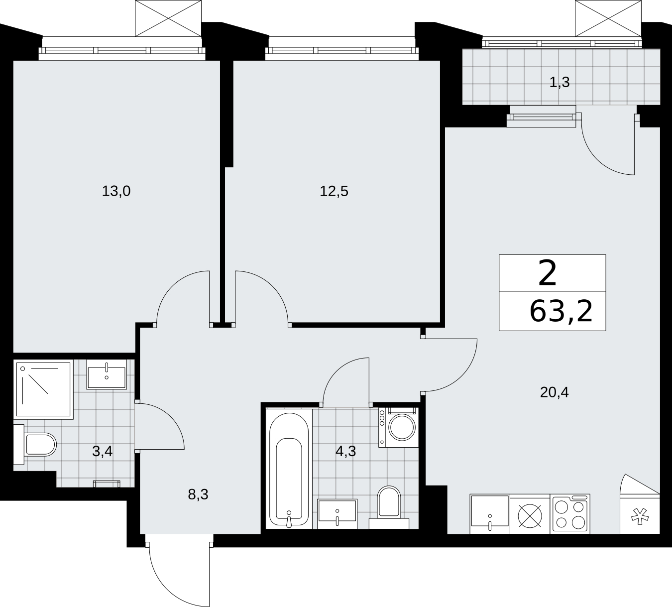 - Общая площадь 63.2 м²