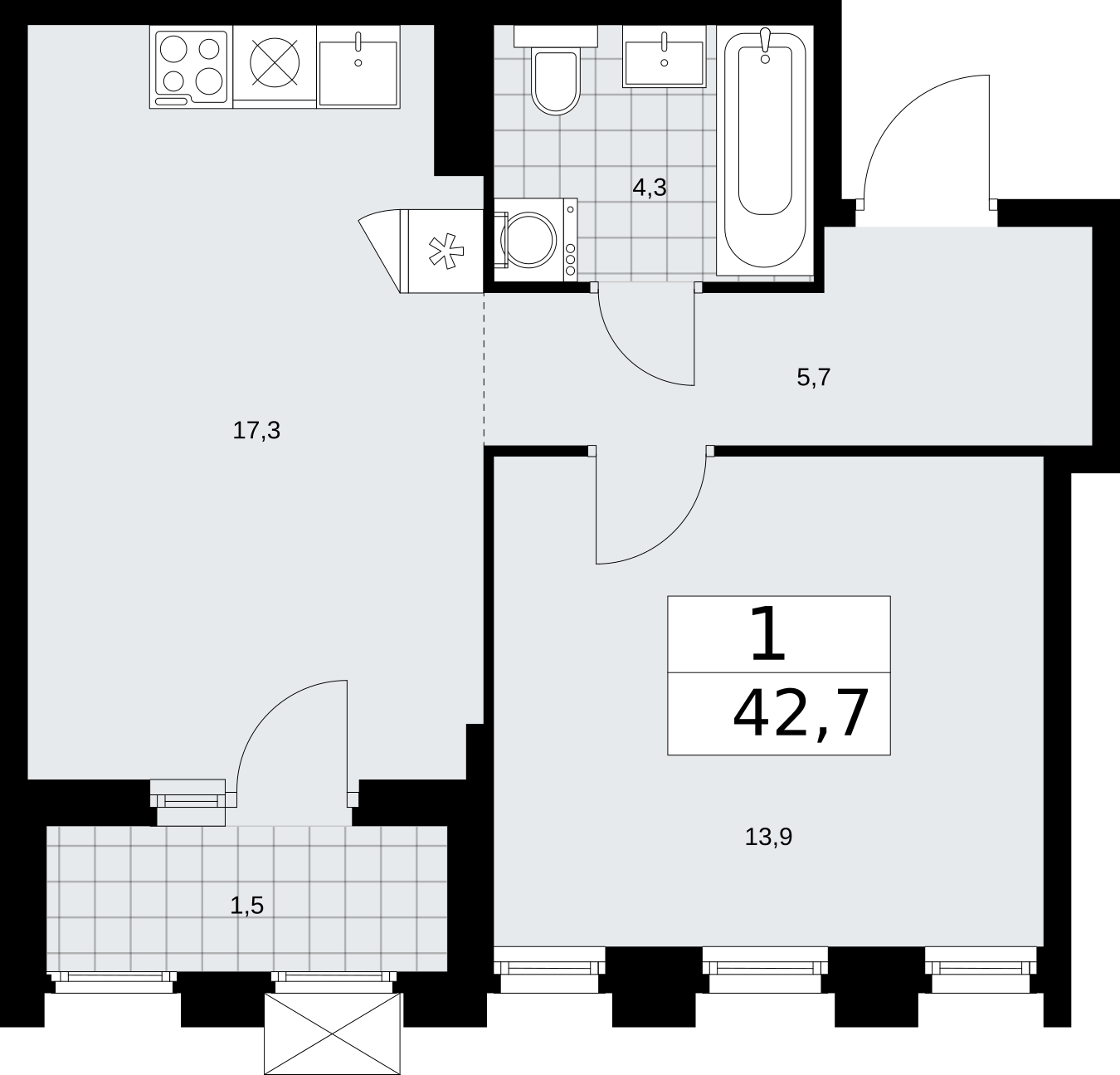 Просторная однокомнатная квартира с отделкой в ЖК "Деснаречье" на 18 этаже. Общая площадь: 42.7 кв.м., жилая: 13.9 кв.м., площадь просторной кухни-столовой: 17.3 кв.м. Все окна выходят на одну сторону. В квартире одна лоджия, один совмещенный санузел. Высота потолков 2.95 м. Эта квартира будет сдана с дизайнеркой отделкой "под ключ". Специально для вас мы разработали несколько решений дизайнерской отделки. В отделке используются только современный высококлассные материалы, на все работы предоставляется гарантия. В таком случае вы оплачиваете отделку в сегодняшних ценах, а эту стоимость вы можете разнести в ипотечных платежах. Квартира находится в корпусе 7.4. Дом монолитный, одноподъездный, высотой 22 этажа. На этаже 9 квартир. В подъезде 1 пассажирский и 2 грузовых лифта. Начало строительства - 2 квартал 2025 года. Окончание строительства - 1 квартал 2028 года. Оформление сделки по договору долевого участия. Артикул квартиры по базе застройщика 88К-7.4-1022. ПРЕДЛОЖЕНИЯ ОТ ЗАСТРОЙЩИКА В ОКТЯБРЕ 2025: Ипотека от 13,9 % для всех! На весь срок. "Семейная ипотека" вернулась. Ставка от 3,5 % на весь срок! Без удорожания! Выгодное ипотечное комбо: Ипотека от 2200 р./мес. и от 6 % после рождения ребёнка! Ипотека для всех "Держи пять!" - ставка 5 % на 2 года! *более подробную информацию по скидкам и акциям уточняйте в отделе продаж Масштабный проект "Деснаречье" на юго-западе Москвы, который включает три новых района («квартала»), объединённые общей идеей – воплотить в реальность мечты современных жителей столицы об интересном, комфортном и разноплановом городском пространстве в окружении рек и лесов, словно сошедших с полотен русских живописцев: - «Берег» оценят все, кому близка водная стихия: плеск волн, солнечные блики и прогулки вдоль тихого течения речи. - «Лес» утопает в зелени парков и лесов. Здесь соблюдён идеальный баланс загородного спокойствия и столичного комфорта. - «Парк», самый энергичный и яркий, отличается высокой концентрацией пространств для спорта и творчества. Жилой комплекс "Деснаречье" расположится в 12 км от МКАД по современному Калужскому шоссе. Внешний облик зданий соответствует современному стилю и стандартам, характерным и для других популярных проектов ГК «А101»: сочетание контрастных тонов, большое количество остекления, в котором отражается небо, гармония с природным окружением. Весь город - в вашем районе. Находиться на территории «15-минутного города» значит иметь всё необходимое для полноценной жизни в шаговой доступности. Маршруты в районе «Деснаречье» выстроены так, чтобы добраться до магазинов, парков, школ, салонов услуг и других объектов можно было всего за несколько минут пешком или на велосипеде. Двор закрытый от машин – это тишина, комфорт и безопасность, поэтому все машино-места (включая «семейные» и увеличенные, с возможностью установки роллетных шкафов) находятся в подземном паркинге. В паркинги можно спуститься на лифте из любого подъезда или по лестнице. Рядом с «Деснаречьем» в 2027 году планируется открытие станции метро «Десна», до которой будет удобно добраться пешком или на велосипеде. Дорога на автомобиле до перехватывающих парковок станций «Ольховая» и «Прокшино» займёт около 10 минут. В процессе реализации проекта будут появляться новые маршруты общественного транспорта по районам. Уже сейчас на Калужском шоссе развита сеть 