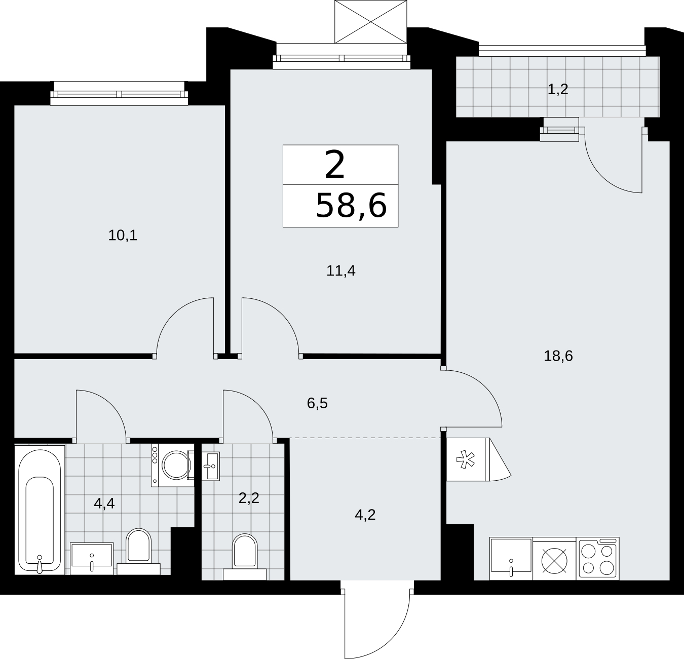 Просторная 2-комн. квартира в ЖК "Деснаречье" на 10 этаже. Квартира без отделки, после оформления собственности можно делать ремонт. Общая площадь: 58.6 кв.м., жилая: 21.5 кв.м., площадь просторной кухни-столовой: 18.6 кв.м. Комнаты изолированные, все окна выходят на одну сторону. В квартире одна лоджия, один совмещенный и один раздельный санузел. Высота потолков 2.95 м. Эта квартира предлагается без отделки. Будут установлены стеклопакеты с повышенной тепло- и шумоизоляцией, в квартиру заведены все коммуникации. Вы сможете в полном объеме реализовать ваши идеи обустройства вашего комфортного дома. Для тех, кто ценит время и не хочет дополнительных трат на ремонт мы предлагаем квартиры с предчистовой и дизайнерской отделкой. Дом монолитный, черырехподъездный, переменной этажности, от 9 до 17 этажей. Квартира находится в 4-й секции высотой 16 этажей в корпусе 7.3. На этаже 5 квартир. В подъезде 1 пассажирский и 1 грузовой лифт. Начало строительства - 2 квартал 2025 года. Окончание строительства - 1 квартал 2028 года. Оформление сделки по договору долевого участия. Артикул квартиры по базе застройщика 88К-7.3-836. ПРЕДЛОЖЕНИЯ ОТ ЗАСТРОЙЩИКА В ОКТЯБРЕ 2025: Ипотека от 13,9 % для всех! На весь срок. "Семейная ипотека" вернулась. Ставка от 3,5 % на весь срок! Без удорожания! Выгодное ипотечное комбо: Ипотека от 2200 р./мес. и от 6 % после рождения ребёнка! Ипотека для всех "Держи пять!" - ставка 5 % на 2 года! *более подробную информацию по скидкам и акциям уточняйте в отделе продаж Масштабный проект "Деснаречье" на юго-западе Москвы, который включает три новых района («квартала»), объединённые общей идеей – воплотить в реальность мечты современных жителей столицы об интересном, комфортном и разноплановом городском пространстве в окружении рек и лесов, словно сошедших с полотен русских живописцев: - «Берег» оценят все, кому близка водная стихия: плеск волн, солнечные блики и прогулки вдоль тихого течения речи. - «Лес» утопает в зелени парков и лесов. Здесь соблюдён идеальный баланс загородного спокойствия и столичного комфорта. - «Парк», самый энергичный и яркий, отличается высокой концентрацией пространств для спорта и творчества. Жилой комплекс "Деснаречье" расположится в 12 км от МКАД по современному Калужскому шоссе. Внешний облик зданий соответствует современному стилю и стандартам, характерным и для других популярных проектов ГК «А101»: сочетание контрастных тонов, большое количество остекления, в котором отражается небо, гармония с природным окружением. Весь город - в вашем районе. Находиться на территории «15-минутного города» значит иметь всё необходимое для полноценной жизни в шаговой доступности. Маршруты в районе «Деснаречье» выстроены так, чтобы добраться до магазинов, парков, школ, салонов услуг и других объектов можно было всего за несколько минут пешком или на велосипеде. Двор закрытый от машин – это тишина, комфорт и безопасность, поэтому все машино-места (включая «семейные» и увеличенные, с возможностью установки роллетных шкафов) находятся в подземном паркинге. В паркинги можно спуститься на лифте из любого подъезда или по лестнице. Рядом с «Деснаречьем» в 2027 году планируется открытие станции метро «Десна», до которой будет удобно добраться пешком или на велосипеде. Дорога на автомобиле до перехватывающих парковок станций «Ольховая» и «Прокшино» займёт около 10