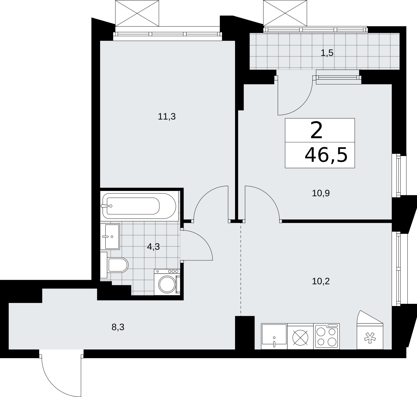 Двухкомнатная квартира от застройщика с отделкой в ЖК "Деснаречье" на 8 этаже. Общая площадь: 46.5 кв.м., жилая: 22.2 кв.м., площадь просторной кухни-столовой: 10.2 кв.м. Угловая квартира, идеально подойдет любителям тишины и панорамных видов. В квартире одна лоджия, один совмещенный санузел. Высота потолков 2.95 м. Эта квартира будет сдана с дизайнеркой отделкой "под ключ". Специально для вас мы разработали несколько решений дизайнерской отделки. В отделке используются только современный высококлассные материалы, на все работы предоставляется гарантия. В таком случае вы оплачиваете отделку в сегодняшних ценах, а эту стоимость вы можете разнести в ипотечных платежах. Дом монолитный, двухподъездный, высотой 11 этажей. Квартира находится во 2-й секции в корпусе 7.6. На этаже 5 квартир. В подъезде 1 пассажирский и 1 грузовой лифт. Начало строительства - 2 квартал 2025 года. Окончание строительства - 1 квартал 2028 года. Оформление сделки по договору долевого участия. Артикул квартиры по базе застройщика 88К-7.6-1297. ПРЕДЛОЖЕНИЯ ОТ ЗАСТРОЙЩИКА В ОКТЯБРЕ 2025: Ипотека от 13,9 % для всех! На весь срок. "Семейная ипотека" вернулась. Ставка от 3,5 % на весь срок! Без удорожания! Выгодное ипотечное комбо: Ипотека от 2200 р./мес. и от 6 % после рождения ребёнка! Ипотека для всех "Держи пять!" - ставка 5 % на 2 года! *более подробную информацию по скидкам и акциям уточняйте в отделе продаж Масштабный проект "Деснаречье" на юго-западе Москвы, который включает три новых района («квартала»), объединённые общей идеей – воплотить в реальность мечты современных жителей столицы об интересном, комфортном и разноплановом городском пространстве в окружении рек и лесов, словно сошедших с полотен русских живописцев: - «Берег» оценят все, кому близка водная стихия: плеск волн, солнечные блики и прогулки вдоль тихого течения речи. - «Лес» утопает в зелени парков и лесов. Здесь соблюдён идеальный баланс загородного спокойствия и столичного комфорта. - «Парк», самый энергичный и яркий, отличается высокой концентрацией пространств для спорта и творчества. Жилой комплекс "Деснаречье" расположится в 12 км от МКАД по современному Калужскому шоссе. Внешний облик зданий соответствует современному стилю и стандартам, характерным и для других популярных проектов ГК «А101»: сочетание контрастных тонов, большое количество остекления, в котором отражается небо, гармония с природным окружением. Весь город - в вашем районе. Находиться на территории «15-минутного города» значит иметь всё необходимое для полноценной жизни в шаговой доступности. Маршруты в районе «Деснаречье» выстроены так, чтобы добраться до магазинов, парков, школ, салонов услуг и других объектов можно было всего за несколько минут пешком или на велосипеде. Двор закрытый от машин – это тишина, комфорт и безопасность, поэтому все машино-места (включая «семейные» и увеличенные, с возможностью установки роллетных шкафов) находятся в подземном паркинге. В паркинги можно спуститься на лифте из любого подъезда или по лестнице. Рядом с «Деснаречьем» в 2027 году планируется открытие станции метро «Десна», до которой будет удобно добраться пешком или на велосипеде. Дорога на автомобиле до перехватывающих парковок станций «Ольховая» и «Прокшино» займёт около 10 минут. В процессе реализации проекта будут появляться новые маршруты общественного транспорт
