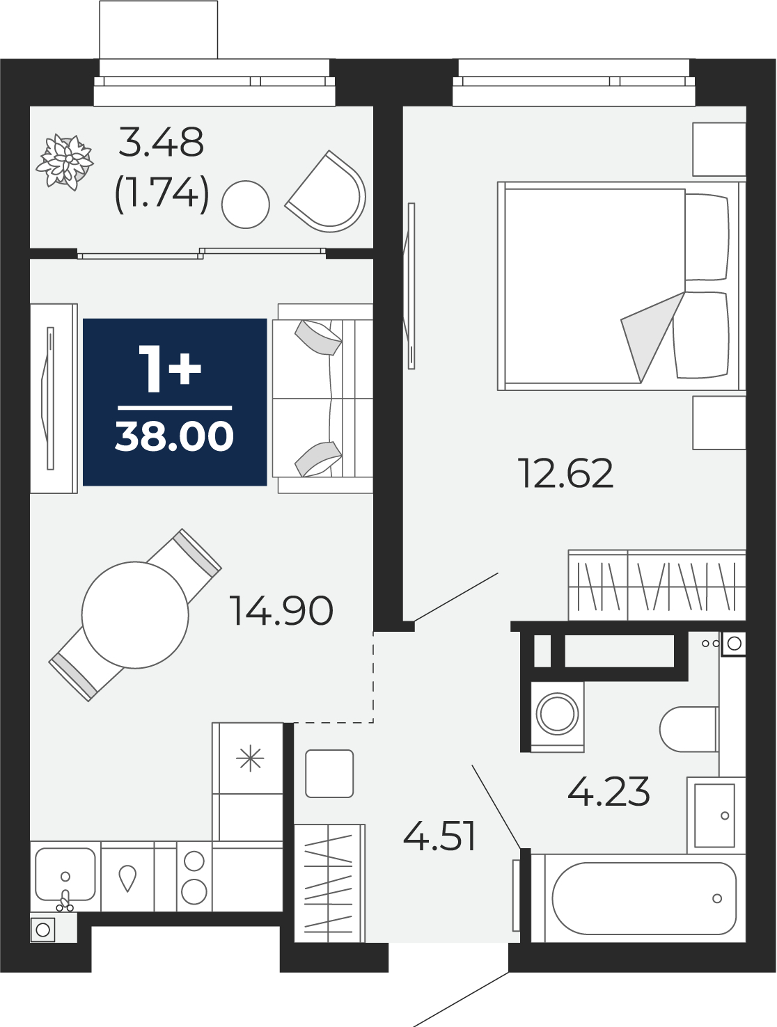 Однокомнатная квартира от застройщика с предчистовой отделкой в ЖК "Прео" на 12 этаже. Общая площадь: 38 кв.м., жилая: 12.62 кв.м., площадь просторной кухни-столовой: 14.9 кв.м. Все окна выходят на одну сторону. В квартире одна лоджия, один совмещенный санузел. Высота потолков 2.7 м. Дом монолитный, трехподъездный, переменной этажности, от 14 до 22 этажей. Квартира находится во 2-й секции высотой 22 этажа в корпусе 208. На этаже 10 квартир. В подъезде 1 пассажирский и 1 грузовой лифт. Окончание строительства - 4 квартал 2025 года. Оформление сделки по договору долевого участия. Преображенский — один из самых привлекательных районов для жизни! Это полностью самостоятельный жилой район с точки зрения инфраструктуры. Преображенский находится между Московским и Червишевским трактами в квартале улиц Закалужская — Вьюжная — Александра Протозанова. Не нужно ждать, когда появится инфраструктура — переезжайте на всё готовое. Вблизи расположены действующие школа и детский сад. В этом году откроется еще один сад, а в следующем году — школа. По соседству с Преображенским запланировано строительство городского парка «Комарово» площадью 38 гектар. За 10 минут можно доехать на автомобиле до крупных ТРЦ: «Лента», «Кристалл», «Леруа Мерлен», «Метро» и «Ашан». С 2018 года в районе открыт Соседский центр — пространство, созданное для формирования добрососедской среды, совместного досуга, общения и реализации соседских инициатив. Здесь проходят встречи соседей, а также сами жители района организовывают мероприятия. Организатором такого события может стать любой желающий. В квартирах выполнена качественная предчистовая отделка. Гладкие стены с финишным выравниванием по маякам. Ровный потолок для установки натяжного потолка. Установлены пятикамерные окна с двойным стеклопакетом (3 стекла). Дизайнерские холлы с видеонаблюдением, безбарьерным и прозрачным входом – всегда светло и спокойно. На первом этаже есть просторные колясочные, где все жители могут оставлять свои коляски и велосипеды. В Преображенском есть всё, что нужно для активного отдыха и занятий спортом. Мы сделали большое футбольное поле с безопасным покрытием. Также установили хоккейный корт, который оборудован по всем необходимым стандартам. Во дворах можно делать упражнения на специальных площадках с турниками. Весь район мы обустроили велодорожками, которые связаны в единый маршрут. У нас есть сухие фонтаны, бьющие из земли, деревья, веревки, сетки, скалодром, газон, песок и резинка — осталось просто дать своему ребенку право на свободную игру. По-настоящему хорошие дворы — это те, которые дети предпочитают соцсетям и телевизору. Аккредитация в банках: ПАО «Газпромбанк», ОАО «Альфа-Банк», ПАО «Банк Уралсиб», ПАО Банк «ВТБ», «Сбербанк России» и других. (AQID02514890)