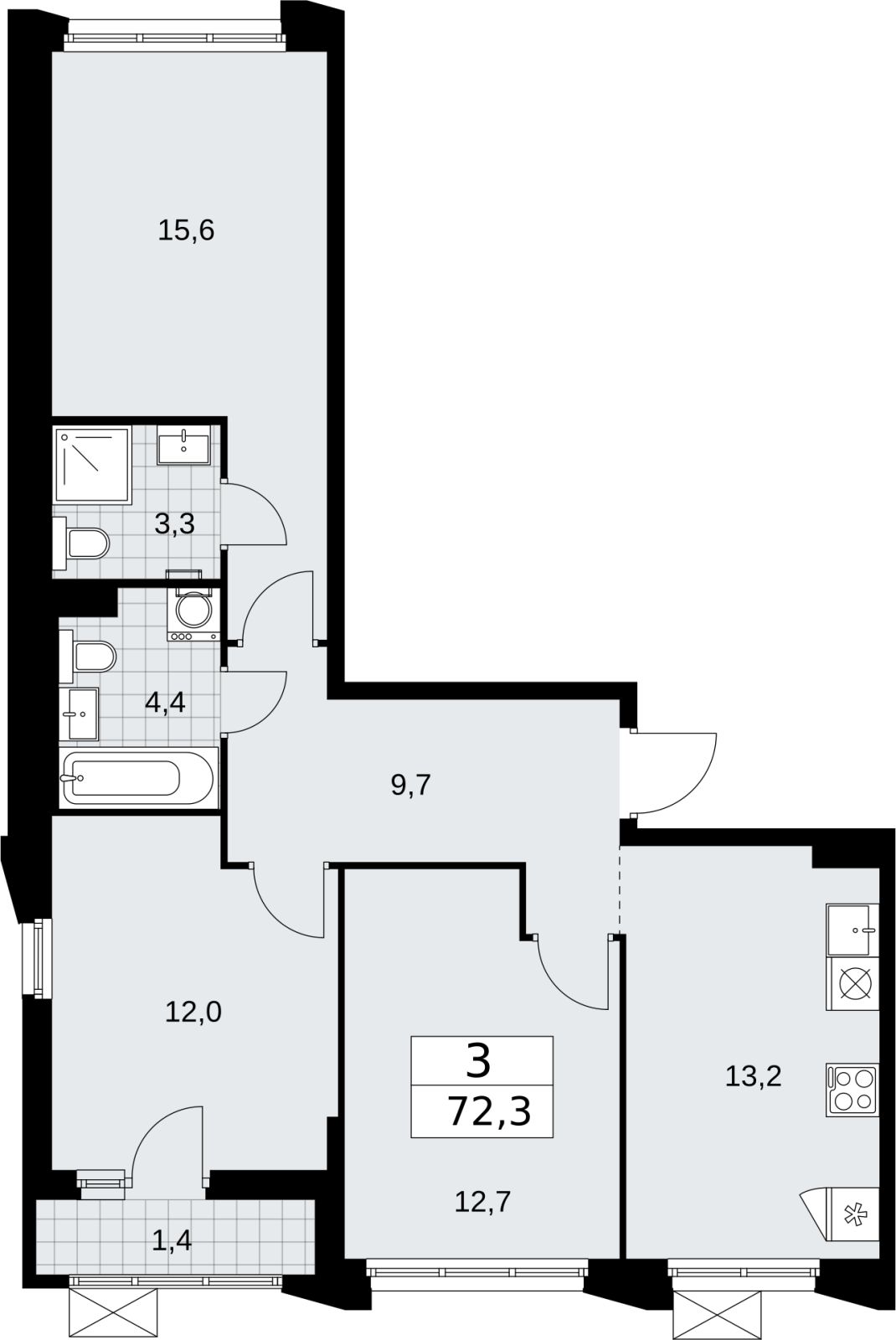 3-комн. квартира от застройщика в ЖК "Деснаречье" на 6 этаже. Квартира без отделки, полностью готова к ремонту. Общая площадь: 72.3 кв.м., жилая: 40.3 кв.м., площадь просторной кухни-столовой: 13.2 кв.м. Квартира без проходных комнат, окна выходят нa три cтopoны дома. В квартире одна лоджия, два совмещенных санузла. Высота потолков 2.95 м. Эта квартира предлагается без отделки. Будут установлены стеклопакеты с повышенной тепло- и шумоизоляцией, в квартиру заведены все коммуникации. Вы сможете в полном объеме реализовать ваши идеи обустройства вашего комфортного дома. Для тех, кто ценит время и не хочет дополнительных трат на ремонт мы предлагаем квартиры с предчистовой и дизайнерской отделкой. Дом монолитный, многоподъездный, переменной этажности, от 8 до 16 этажей. Квартира находится в 3-й секции высотой 14 этажей в корпусе 7.1. На этаже 6 квартир. В подъезде 1 пассажирский и 1 грузовой лифт. Начало строительства - 2 квартал 2025 года. Окончание строительства - 1 квартал 2028 года. Оформление сделки по договору долевого участия. Артикул квартиры по базе застройщика 88К-7.1-140. ПРЕДЛОЖЕНИЯ ОТ ЗАСТРОЙЩИКА В ОКТЯБРЕ 2025: Ипотека от 13,9 % для всех! На весь срок. "Семейная ипотека" вернулась. Ставка от 3,5 % на весь срок! Без удорожания! Выгодное ипотечное комбо: Ипотека от 2200 р./мес. и от 6 % после рождения ребёнка! Ипотека для всех "Держи пять!" - ставка 5 % на 2 года! *более подробную информацию по скидкам и акциям уточняйте в отделе продаж Масштабный проект "Деснаречье" на юго-западе Москвы, который включает три новых района («квартала»), объединённые общей идеей – воплотить в реальность мечты современных жителей столицы об интересном, комфортном и разноплановом городском пространстве в окружении рек и лесов, словно сошедших с полотен русских живописцев: - «Берег» оценят все, кому близка водная стихия: плеск волн, солнечные блики и прогулки вдоль тихого течения речи. - «Лес» утопает в зелени парков и лесов. Здесь соблюдён идеальный баланс загородного спокойствия и столичного комфорта. - «Парк», самый энергичный и яркий, отличается высокой концентрацией пространств для спорта и творчества. Жилой комплекс "Деснаречье" расположится в 12 км от МКАД по современному Калужскому шоссе. Внешний облик зданий соответствует современному стилю и стандартам, характерным и для других популярных проектов ГК «А101»: сочетание контрастных тонов, большое количество остекления, в котором отражается небо, гармония с природным окружением. Весь город - в вашем районе. Находиться на территории «15-минутного города» значит иметь всё необходимое для полноценной жизни в шаговой доступности. Маршруты в районе «Деснаречье» выстроены так, чтобы добраться до магазинов, парков, школ, салонов услуг и других объектов можно было всего за несколько минут пешком или на велосипеде. Двор закрытый от машин – это тишина, комфорт и безопасность, поэтому все машино-места (включая «семейные» и увеличенные, с возможностью установки роллетных шкафов) находятся в подземном паркинге. В паркинги можно спуститься на лифте из любого подъезда или по лестнице. Рядом с «Деснаречьем» в 2027 году планируется открытие станции метро «Десна», до которой будет удобно добраться пешком или на велосипеде. Дорога на автомобиле до перехватывающих парковок станций «Ольховая» и «Прокшино» займёт около 10 минут. В процессе реализации проекта 