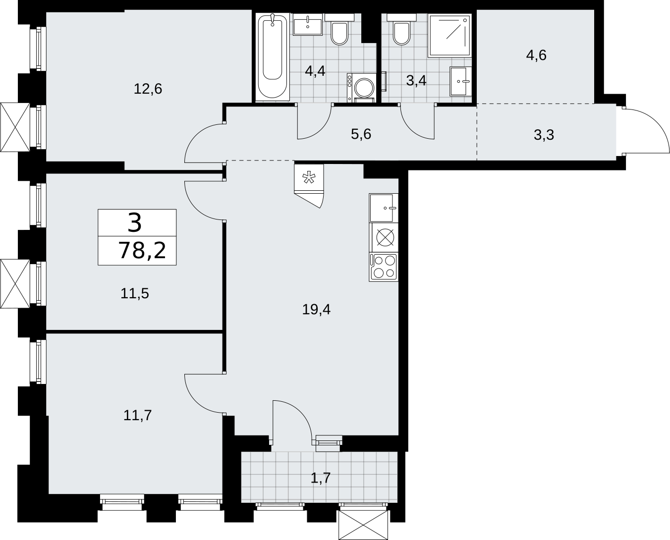 Просторная 3-комн. квартира с отделкой в ЖК "Деснаречье" на 3 этаже. Общая площадь: 78.2 кв.м., жилая: 36 кв.м., площадь просторной кухни-столовой: 19.3 кв.м. Квартира угловая, идеально подойдет любителям тишины и панорамных видов. В квартире одна лоджия, два совмещенных санузла. Высота потолков 2.95 м. Эта квартира будет сдана с дизайнеркой отделкой "под ключ". Специально для вас мы разработали несколько решений дизайнерской отделки. В отделке используются только современный высококлассные материалы, на все работы предоставляется гарантия. В таком случае вы оплачиваете отделку в сегодняшних ценах, а эту стоимость вы можете разнести в ипотечных платежах. Имеется ниша под гардероб. Квартира находится в корпусе 7.4. Дом монолитный, одноподъездный, высотой 22 этажа. На этаже 9 квартир. В подъезде 1 пассажирский и 2 грузовых лифта. Начало строительства - 2 квартал 2025 года. Окончание строительства - 1 квартал 2028 года. Оформление сделки по договору долевого участия. Артикул квартиры по базе застройщика 88К-7.4-880. ПРЕДЛОЖЕНИЯ ОТ ЗАСТРОЙЩИКА В ОКТЯБРЕ 2025: Ипотека от 13,9 % для всех! На весь срок. "Семейная ипотека" вернулась. Ставка от 3,5 % на весь срок! Без удорожания! Выгодное ипотечное комбо: Ипотека от 2200 р./мес. и от 6 % после рождения ребёнка! Ипотека для всех "Держи пять!" - ставка 5 % на 2 года! *более подробную информацию по скидкам и акциям уточняйте в отделе продаж Масштабный проект "Деснаречье" на юго-западе Москвы, который включает три новых района («квартала»), объединённые общей идеей – воплотить в реальность мечты современных жителей столицы об интересном, комфортном и разноплановом городском пространстве в окружении рек и лесов, словно сошедших с полотен русских живописцев: - «Берег» оценят все, кому близка водная стихия: плеск волн, солнечные блики и прогулки вдоль тихого течения речи. - «Лес» утопает в зелени парков и лесов. Здесь соблюдён идеальный баланс загородного спокойствия и столичного комфорта. - «Парк», самый энергичный и яркий, отличается высокой концентрацией пространств для спорта и творчества. Жилой комплекс "Деснаречье" расположится в 12 км от МКАД по современному Калужскому шоссе. Внешний облик зданий соответствует современному стилю и стандартам, характерным и для других популярных проектов ГК «А101»: сочетание контрастных тонов, большое количество остекления, в котором отражается небо, гармония с природным окружением. Весь город - в вашем районе. Находиться на территории «15-минутного города» значит иметь всё необходимое для полноценной жизни в шаговой доступности. Маршруты в районе «Деснаречье» выстроены так, чтобы добраться до магазинов, парков, школ, салонов услуг и других объектов можно было всего за несколько минут пешком или на велосипеде. Двор закрытый от машин – это тишина, комфорт и безопасность, поэтому все машино-места (включая «семейные» и увеличенные, с возможностью установки роллетных шкафов) находятся в подземном паркинге. В паркинги можно спуститься на лифте из любого подъезда или по лестнице. Рядом с «Деснаречьем» в 2027 году планируется открытие станции метро «Десна», до которой будет удобно добраться пешком или на велосипеде. Дорога на автомобиле до перехватывающих парковок станций «Ольховая» и «Прокшино» займёт около 10 минут. В процессе реализации проекта будут появляться новые маршруты общественного транспорта