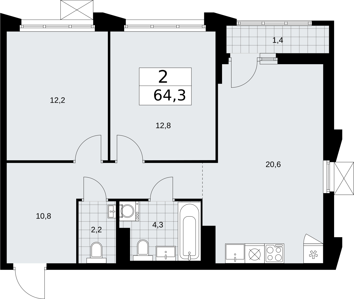 2-комн. квартира в ЖК "Деснаречье" на 13 этаже. Квартира без отделки, новый владелец может сделать ремонт по индивидуальному проекту. Общая площадь: 64.3 кв.м., жилая: 25 кв.м., площадь просторной кухни-столовой: 20.6 кв.м. Угловая квартира, идеально подойдет любителям тишины и панорамных видов. В квартире одна лоджия, один совмещенный и один раздельный санузел. Высота потолков 2.95 м. Эта квартира предлагается без отделки. Будут установлены стеклопакеты с повышенной тепло- и шумоизоляцией, в квартиру заведены все коммуникации. Вы сможете в полном объеме реализовать ваши идеи обустройства вашего комфортного дома. Для тех, кто ценит время и не хочет дополнительных трат на ремонт мы предлагаем квартиры с предчистовой и дизайнерской отделкой. Дом монолитный, черырехподъездный, переменной этажности, от 9 до 17 этажей. Квартира находится в 4-й секции высотой 16 этажей в корпусе 7.3. На этаже 5 квартир. В подъезде 1 пассажирский и 1 грузовой лифт. Начало строительства - 2 квартал 2025 года. Окончание строительства - 1 квартал 2028 года. Оформление сделки по договору долевого участия. Артикул квартиры по базе застройщика 88К-7.3-853. ПРЕДЛОЖЕНИЯ ОТ ЗАСТРОЙЩИКА В ОКТЯБРЕ 2025: Ипотека от 13,9 % для всех! На весь срок. "Семейная ипотека" вернулась. Ставка от 3,5 % на весь срок! Без удорожания! Выгодное ипотечное комбо: Ипотека от 2200 р./мес. и от 6 % после рождения ребёнка! Ипотека для всех "Держи пять!" - ставка 5 % на 2 года! *более подробную информацию по скидкам и акциям уточняйте в отделе продаж Масштабный проект "Деснаречье" на юго-западе Москвы, который включает три новых района («квартала»), объединённые общей идеей – воплотить в реальность мечты современных жителей столицы об интересном, комфортном и разноплановом городском пространстве в окружении рек и лесов, словно сошедших с полотен русских живописцев: - «Берег» оценят все, кому близка водная стихия: плеск волн, солнечные блики и прогулки вдоль тихого течения речи. - «Лес» утопает в зелени парков и лесов. Здесь соблюдён идеальный баланс загородного спокойствия и столичного комфорта. - «Парк», самый энергичный и яркий, отличается высокой концентрацией пространств для спорта и творчества. Жилой комплекс "Деснаречье" расположится в 12 км от МКАД по современному Калужскому шоссе. Внешний облик зданий соответствует современному стилю и стандартам, характерным и для других популярных проектов ГК «А101»: сочетание контрастных тонов, большое количество остекления, в котором отражается небо, гармония с природным окружением. Весь город - в вашем районе. Находиться на территории «15-минутного города» значит иметь всё необходимое для полноценной жизни в шаговой доступности. Маршруты в районе «Деснаречье» выстроены так, чтобы добраться до магазинов, парков, школ, салонов услуг и других объектов можно было всего за несколько минут пешком или на велосипеде. Двор закрытый от машин – это тишина, комфорт и безопасность, поэтому все машино-места (включая «семейные» и увеличенные, с возможностью установки роллетных шкафов) находятся в подземном паркинге. В паркинги можно спуститься на лифте из любого подъезда или по лестнице. Рядом с «Деснаречьем» в 2027 году планируется открытие станции метро «Десна», до которой будет удобно добраться пешком или на велосипеде. Дорога на автомобиле до перехватывающих парковок станций «Ольховая» и «Прокшин