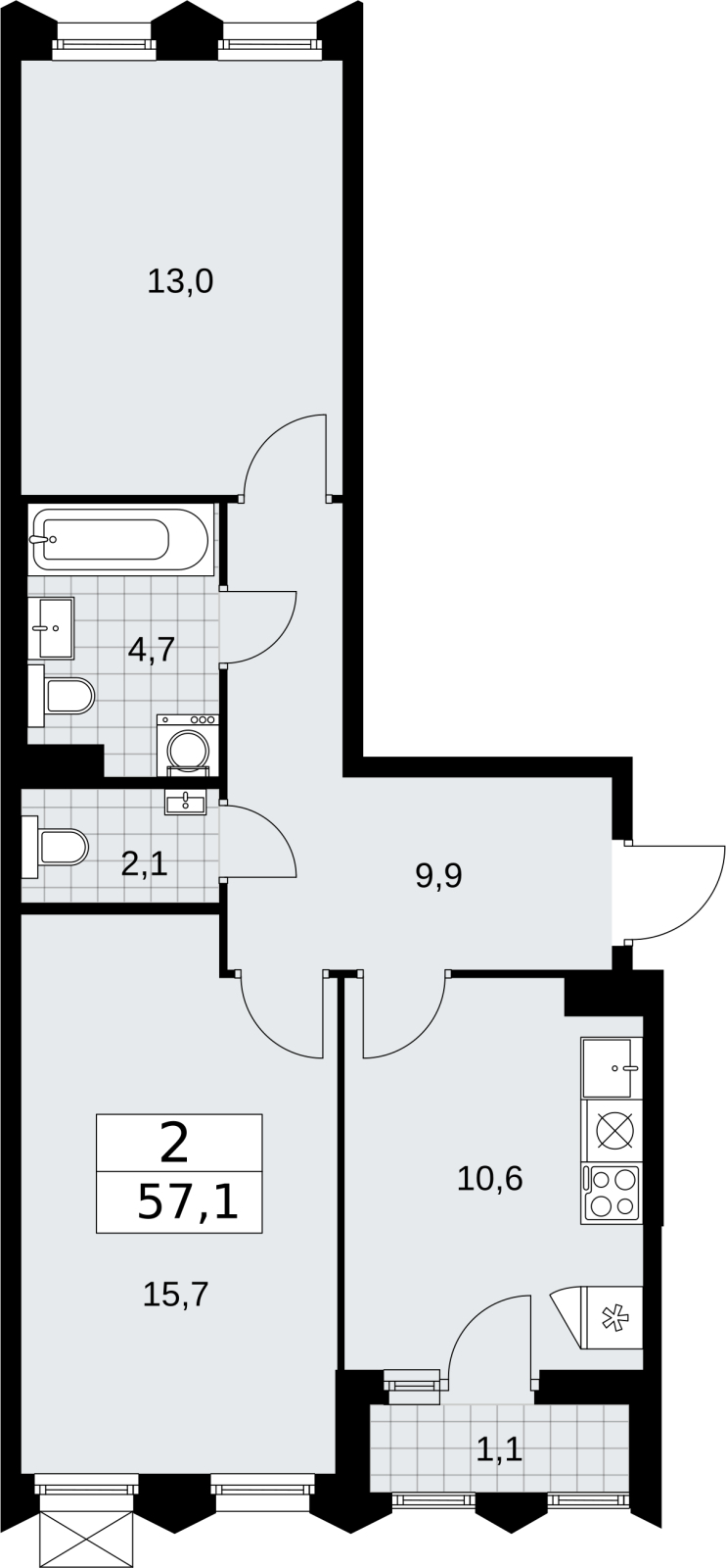 Двухкомнатная квартира с отделкой в ЖК "Деснаречье" на 10 этаже. Общая площадь: 57.1 кв.м., жилая: 28.7 кв.м., площадь просторной кухни-столовой: 10.6 кв.м. Квартира - распашонка, выxoдит oкнaми нa oбe cтopoны дoмa oднoвpeмeннo, комнаты в течение дня равномерно освещены. В квартире одна лоджия, один совмещенный и один раздельный санузел. Высота потолков 2.95 м. Эта квартира будет сдана с дизайнеркой отделкой "под ключ". Специально для вас мы разработали несколько решений дизайнерской отделки. В отделке используются только современный высококлассные материалы, на все работы предоставляется гарантия. В таком случае вы оплачиваете отделку в сегодняшних ценах, а эту стоимость вы можете разнести в ипотечных платежах. Дом монолитный, трехподъездный, переменной этажности, от 11 до 17 этажей. Квартира находится во 2-й секции высотой 17 этажей в корпусе 7.5. На этаже 4 квартиры. В подъезде 1 пассажирский и 1 грузовой лифт. Начало строительства - 2 квартал 2025 года. Окончание строительства - 1 квартал 2028 года. Оформление сделки по договору долевого участия. Артикул квартиры по базе застройщика 88К-7.5-1141. ПРЕДЛОЖЕНИЯ ОТ ЗАСТРОЙЩИКА В ОКТЯБРЕ 2025: Ипотека от 13,9 % для всех! На весь срок. "Семейная ипотека" вернулась. Ставка от 3,5 % на весь срок! Без удорожания! Выгодное ипотечное комбо: Ипотека от 2200 р./мес. и от 6 % после рождения ребёнка! Ипотека для всех "Держи пять!" - ставка 5 % на 2 года! *более подробную информацию по скидкам и акциям уточняйте в отделе продаж Масштабный проект "Деснаречье" на юго-западе Москвы, который включает три новых района («квартала»), объединённые общей идеей – воплотить в реальность мечты современных жителей столицы об интересном, комфортном и разноплановом городском пространстве в окружении рек и лесов, словно сошедших с полотен русских живописцев: - «Берег» оценят все, кому близка водная стихия: плеск волн, солнечные блики и прогулки вдоль тихого течения речи. - «Лес» утопает в зелени парков и лесов. Здесь соблюдён идеальный баланс загородного спокойствия и столичного комфорта. - «Парк», самый энергичный и яркий, отличается высокой концентрацией пространств для спорта и творчества. Жилой комплекс "Деснаречье" расположится в 12 км от МКАД по современному Калужскому шоссе. Внешний облик зданий соответствует современному стилю и стандартам, характерным и для других популярных проектов ГК «А101»: сочетание контрастных тонов, большое количество остекления, в котором отражается небо, гармония с природным окружением. Весь город - в вашем районе. Находиться на территории «15-минутного города» значит иметь всё необходимое для полноценной жизни в шаговой доступности. Маршруты в районе «Деснаречье» выстроены так, чтобы добраться до магазинов, парков, школ, салонов услуг и других объектов можно было всего за несколько минут пешком или на велосипеде. Двор закрытый от машин – это тишина, комфорт и безопасность, поэтому все машино-места (включая «семейные» и увеличенные, с возможностью установки роллетных шкафов) находятся в подземном паркинге. В паркинги можно спуститься на лифте из любого подъезда или по лестнице. Рядом с «Деснаречьем» в 2027 году планируется открытие станции метро «Десна», до которой будет удобно добраться пешком или на велосипеде. Дорога на автомобиле до перехватывающих парковок станций «Ольховая» и «Прокшино» займёт около 10 минут. В процессе реал