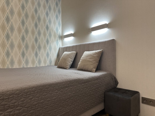 О квартире:Площадь: 42 кв. м + тёплая лоджия ~3 кв. м (итого около 45 кв. м)Потолки: 3,05 м, чистовая штукатурка в три слоя, краска «под яичную скорлупу» — выглядит дорого и дышит.Окна: панорамные, с видом на лес — без плотной застройки и «окон в окна».Полы: шумоизоляция 18 см, дополнительная звукоизоляция спальни и входной зоны — абсолютная тишина.Инженерия: индивидуальное управление отоплением и водой, система защиты от протечек по периметру квартиры.Отделка: современный скандинавский стиль, качественная мебель и техника:духовой шкаф Bosch (Испания), двойная мойка, тёплые полы в ванной и на балконе,кондиционер (охлаждение, обогрев...