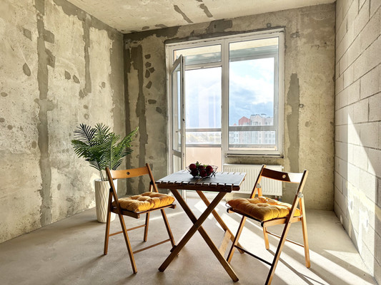 - КУХНЯ-ГОСТИНАЯ (17.2 кв. м), которая является сердцем квартиры. Здесь легко разместится обеденный стол и диван как отдельная зона для отдыха.- из кухни выход на БАЛКОН (4 кв. м), которЫЙ можно использовать как дополнительную рабочую зону или уголок для отдыха, а может стать дополнительным местом для хранения вещей.- ИЗОЛИРОВАННАЯ комната удобной квадратной формы (11.3 кв. м);-САН. УЗЕЛ совмещенный (4.1 кв. м).