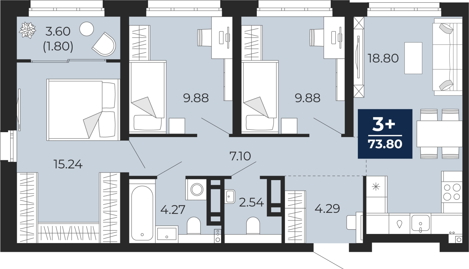 - Общая площадь 73.8 м²