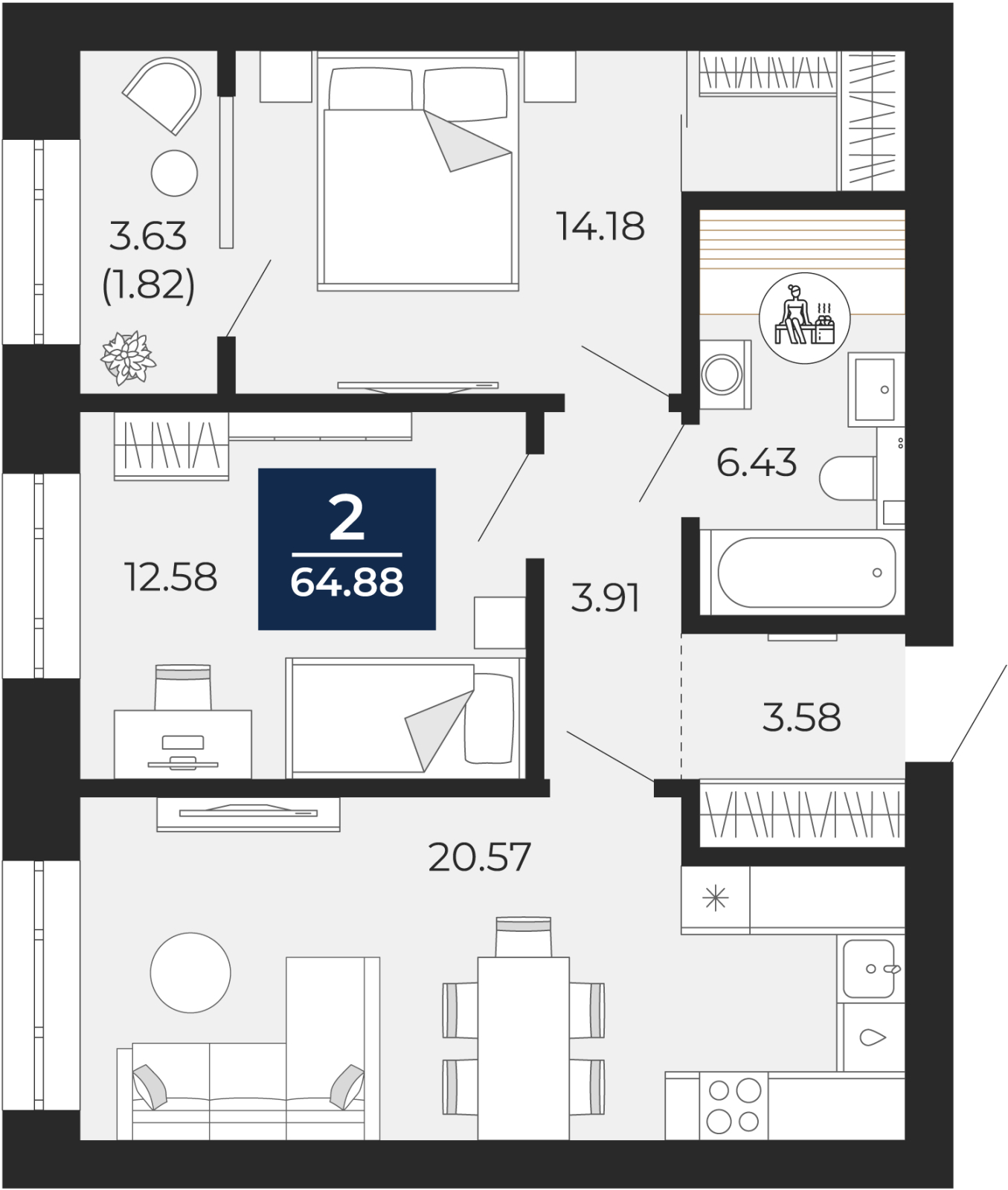 Продается двухкомнатная квартира от застройщика с предчистовой отделкой в ЖК "Преображенский" на 2 этаже. Общая площадь: 63.07 кв.м., жилая: 26.76 кв.м., площадь просторной кухни-столовой: 20.57 кв.м. Комнаты изолированные, все окна выходят на одну сторону. В квартире одна лоджия, один совмещенный санузел. Высота потолков 2.7 м. Дом монолитный, многоподъездный, переменной этажности, от 8 до 12 этажей. Квартира находится во 2-й секции высотой 8 этажей в корпусе ГП-82. На этаже 6 квартир. В подъезде 1 пассажирский и 1 грузовой лифт. Окончание строительства - 3 квартал 2026 года. Оформление сделки по договору долевого участия. Квартал будет расположен в микрорайоне Славянский на пересечении улиц Мира и 70-летия Октября. Престижный район, собственный парк, вся необходимая для жизни, учёбы и работы инфраструктура — новая школа с бассейном и кванториумом, новый детский сад, поликлиника, спорткомплекс, магазины и др. Чтобы в квартирах было как можно больше свободного пространства, мы предусмотрели индивидуальные кладовые на цокольном этаже. Оставляйте коляски и сезонный спортинвентарь после прогулок здесь — удобно для вас и чисто для квартиры. В подземный паркинг можно спуститься на лифте прямо с квартирной площадки. (AQID02484103)