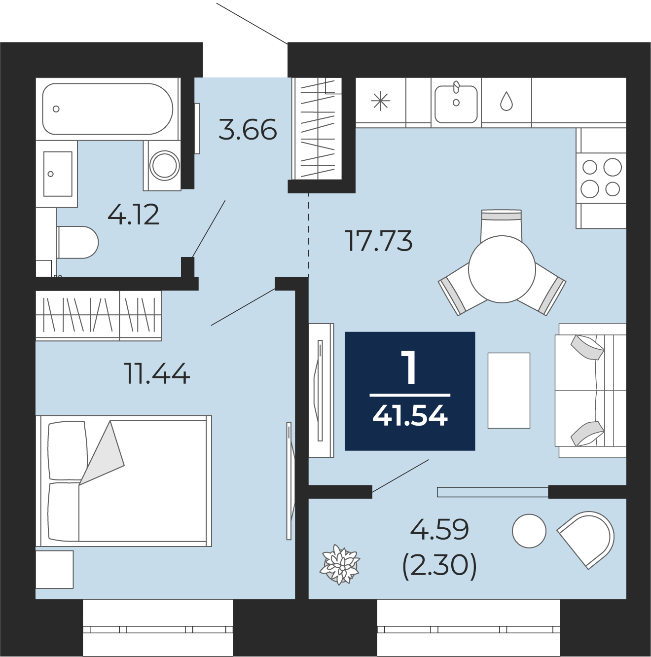 - Жилая площадь 11.44 м²