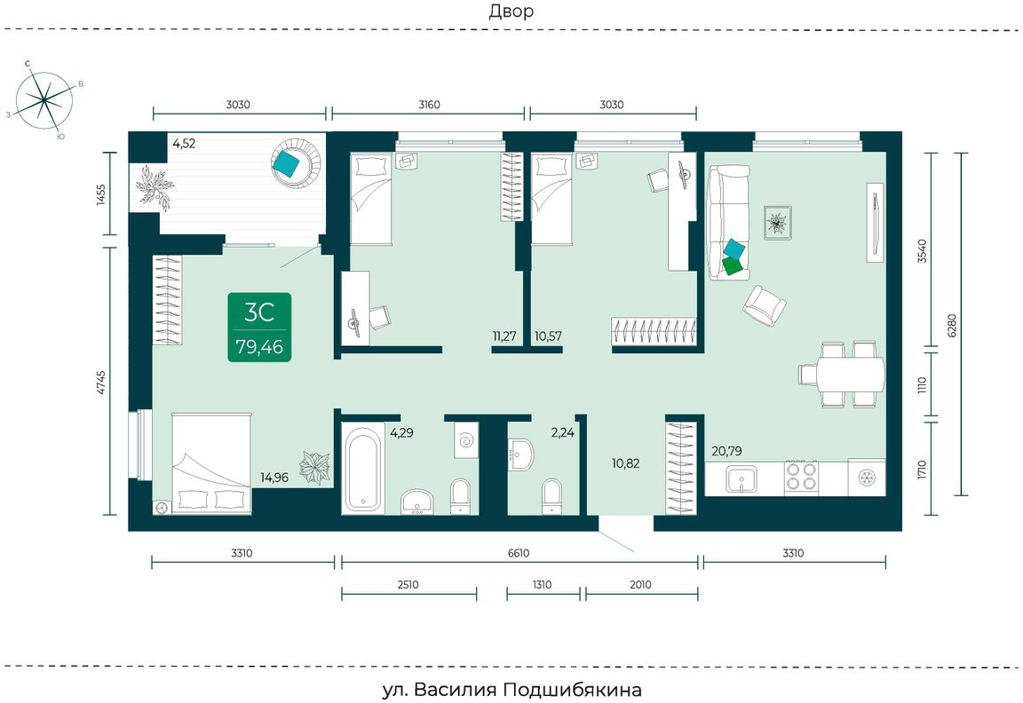 Продается 3-комн. квартира от застройщика в ЖК "Уездные кварталы" на 5 этаже. Квартира без отделки, новый владелец может сделать ремонт по индивидуальному дизайн-проекту. Общая площадь: 79.46 кв.м., жилая: 36.8 кв.м., площадь просторной кухни-столовой: 20.79 кв.м. Угловая квартира, идеально подойдет любителям тишины и панорамных видов. В квартире одна лоджия, один совмещенный и один раздельный санузел. Высота потолков 2.7 м. Дом монолитный, многоподъездный, переменной этажности, от 7 до 17 этажей. Квартира находится в 6-й секции высотой 7 этажей в корпусе ГП-3. На этаже 6 квартир. В подъезде 1 грузовой лифт. Окончание строительства - 1 квартал 2026 года. Оформление сделки по договору долевого участия. «Уездные кварталы» - семейный жилой комплекс комфорт-класса с авторской архитектурой и трехуровневым ландшафтным озеленением. Рядом расположены крупные транспортные развязки, которые позволяют добраться в любую точку города за 15 минут. Жилой комплекс находится в современном районе с развитой инфраструктурой, на первой линии Тюменской Слободы. Вокруг есть всё необходимое в шаговой доступности: новые детские сады и школы, остановки общественного транспорта, магазины, кафе и рестораны, поликлиника, детская школа искусств, парки и спортивный комплекс. На первых этажах квартала расположена собственная коммерческая сеть, а также свой соседский центр. Проект включает 5 домов переменной этажности с более чем 100 планировками - с террасами, французскими балконами и мастер-спальнями. Закрытые дворы оборудованы интерактивными площадками для игр, спортивными зонами и местами тихого отдыха. Вдоль жилого комплекса расположен пешеходный бульвар с сухим фонтаном, а для автомобилей предусмотрен теплый паркинг. Часть квартир можно приобрести с ремонтом, мебелью и техникой от застройщика, а расходы включить в ипотечный платеж. (AQID02514084)