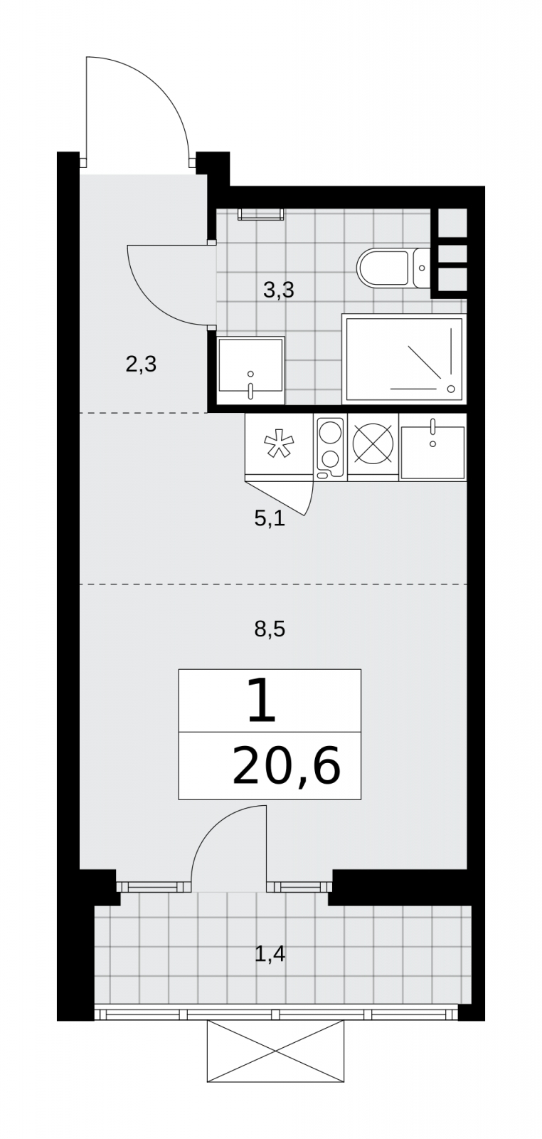 1-комн. квартира-студия в ЖК "Деснаречье" на 6 этаже. Квартира без отделки, новый владелец может сделать ремонт по индивидуальному дизайн-проекту. Общая площадь: 20.6 кв.м., площадь гостиной 13.6 кв.м., из которых 5.1 кв.м. выделено под кухонную зону. Все окна выходят на одну сторону. В квартире один балкон, один совмещенный санузел. Высота потолков 2.99 м. Эта квартира предлагается без отделки. Будут установлены стеклопакеты с повышенной тепло- и шумоизоляцией, в квартиру заведены все коммуникации. Вы сможете в полном объеме реализовать ваши идеи обустройства вашего комфортного дома. Для тех, кто ценит время и не хочет дополнительных трат на ремонт мы предлагаем квартиры с предчистовой и дизайнерской отделкой. Дом монолитный, трехподъездный, высотой 15 этажей. Квартира находится в 1-й секции в корпусе 4.1. На этаже 6 квартир. В подъезде 1 пассажирский и 1 грузовой лифт. Начало строительства - 3 квартал 2023 года. Окончание строительства - 1 квартал 2026 года. Оформление сделки по договору долевого участия. Артикул квартиры по базе застройщика 88К-4.1-28. ПРЕДЛОЖЕНИЯ ОТ ЗАСТРОЙЩИКА В ОКТЯБРЕ 2025: Ипотека от 13,9 % для всех! На весь срок. "Семейная ипотека" вернулась. Ставка от 3,5 % на весь срок! Без удорожания! Выгодное ипотечное комбо: Ипотека от 2200 р./мес. и от 6 % после рождения ребёнка! Ипотека для всех "Держи пять!" - ставка 5 % на 2 года! *более подробную информацию по скидкам и акциям уточняйте в отделе продаж Масштабный проект "Деснаречье" на юго-западе Москвы, который включает три новых района («квартала»), объединённые общей идеей – воплотить в реальность мечты современных жителей столицы об интересном, комфортном и разноплановом городском пространстве в окружении рек и лесов, словно сошедших с полотен русских живописцев: - «Берег» оценят все, кому близка водная стихия: плеск волн, солнечные блики и прогулки вдоль тихого течения речи. - «Лес» утопает в зелени парков и лесов. Здесь соблюдён идеальный баланс загородного спокойствия и столичного комфорта. - «Парк», самый энергичный и яркий, отличается высокой концентрацией пространств для спорта и творчества. Жилой комплекс "Деснаречье" расположится в 12 км от МКАД по современному Калужскому шоссе. Внешний облик зданий соответствует современному стилю и стандартам, характерным и для других популярных проектов ГК «А101»: сочетание контрастных тонов, большое количество остекления, в котором отражается небо, гармония с природным окружением. Весь город - в вашем районе. Находиться на территории «15-минутного города» значит иметь всё необходимое для полноценной жизни в шаговой доступности. Маршруты в районе «Деснаречье» выстроены так, чтобы добраться до магазинов, парков, школ, салонов услуг и других объектов можно было всего за несколько минут пешком или на велосипеде. Двор закрытый от машин – это тишина, комфорт и безопасность, поэтому все машино-места (включая «семейные» и увеличенные, с возможностью установки роллетных шкафов) находятся в подземном паркинге. В паркинги можно спуститься на лифте из любого подъезда или по лестнице. Рядом с «Деснаречьем» в 2027 году планируется открытие станции метро «Десна», до которой будет удобно добраться пешком или на велосипеде. Дорога на автомобиле до перехватывающих парковок станций «Ольховая» и «Прокшино» займёт около 10 минут. В процессе реализации проекта будут появляться 