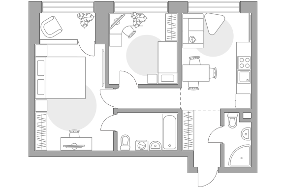 - Жилая площадь 26.45 м²
