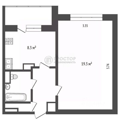 - Жилая площадь 19.3 м²
