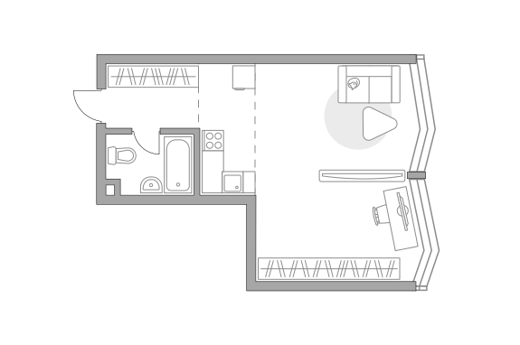 - Жилая площадь 26.17 м²