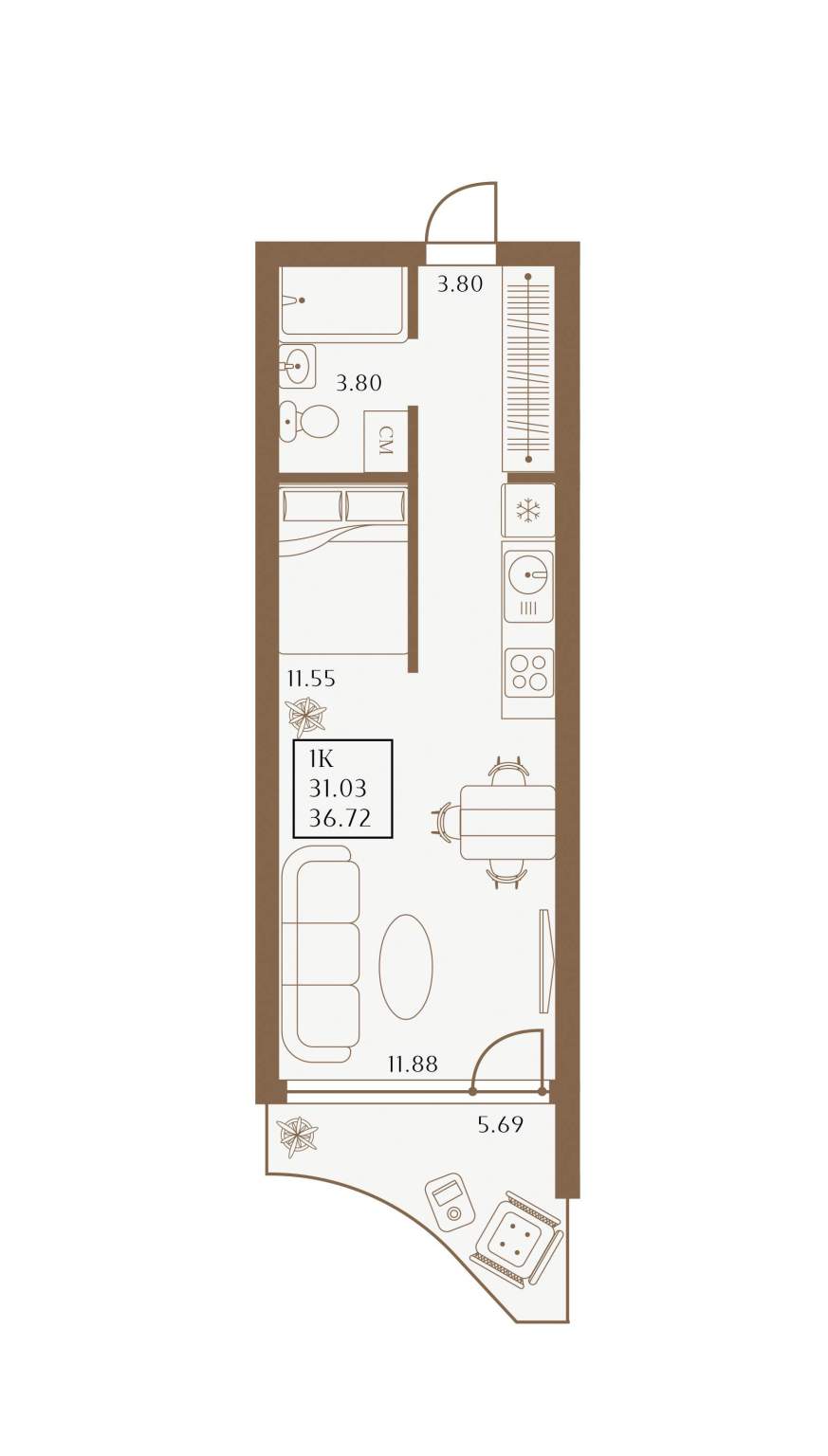 - Общая площадь 36.72 м²