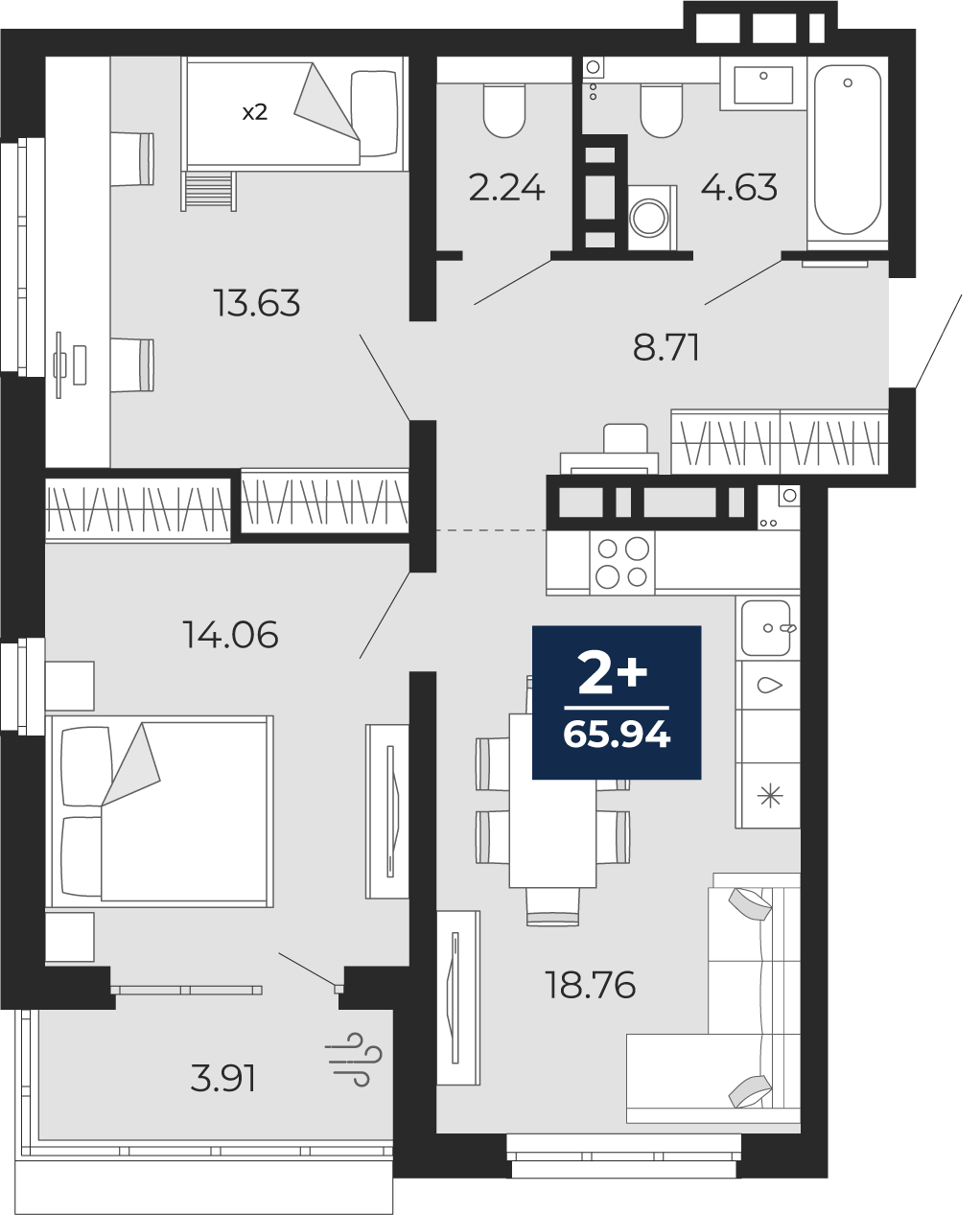- Общая площадь 63.2 м²
