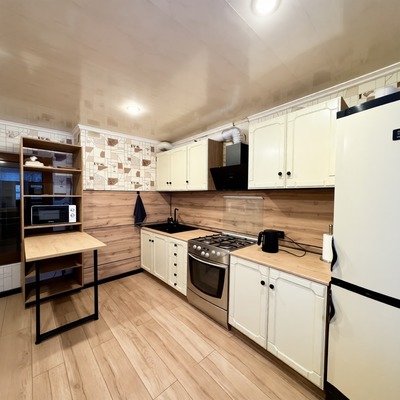 В квартире остаётся вся мебель, как на фото, а также вся кухонная техника, стиральная машина и новая сушильная машина.