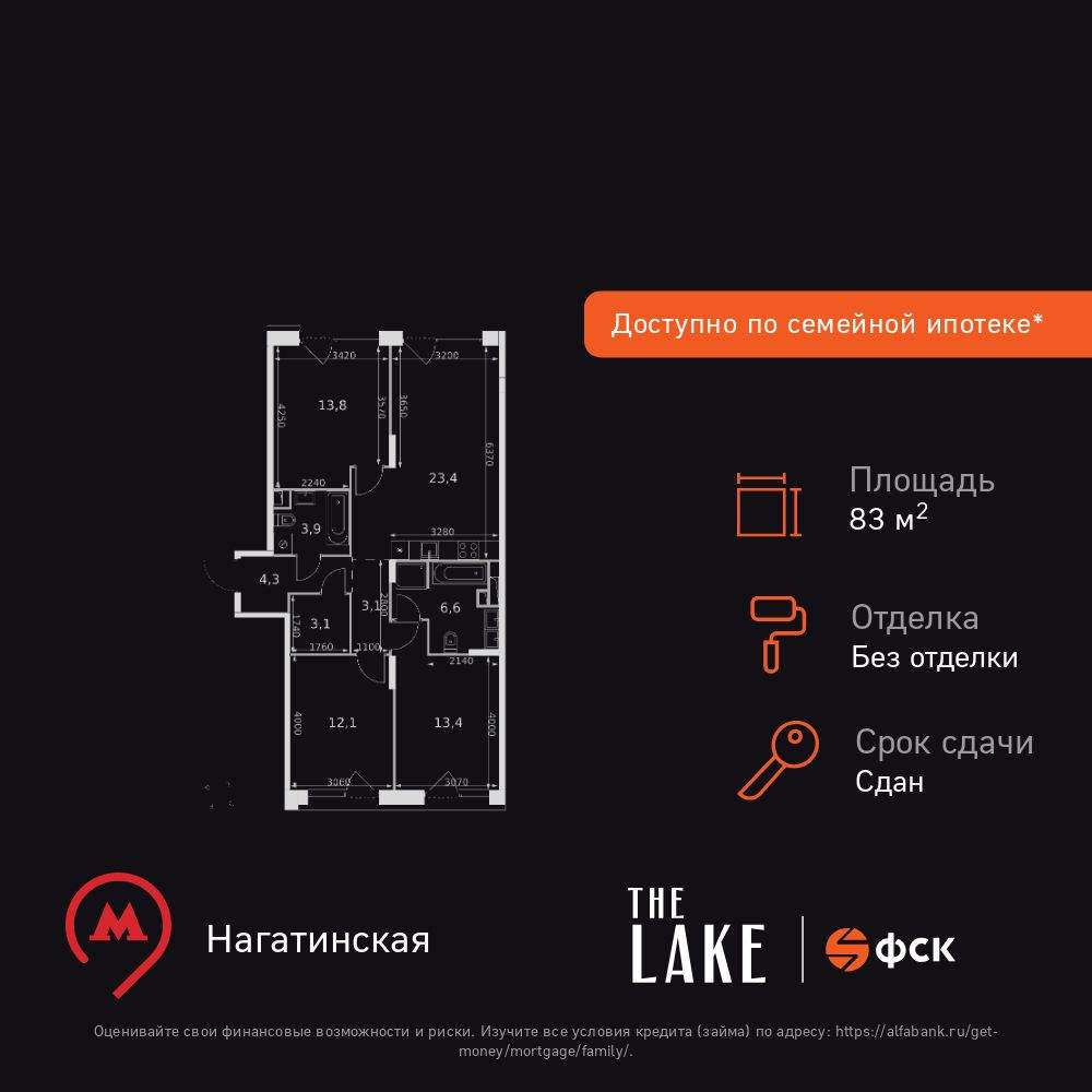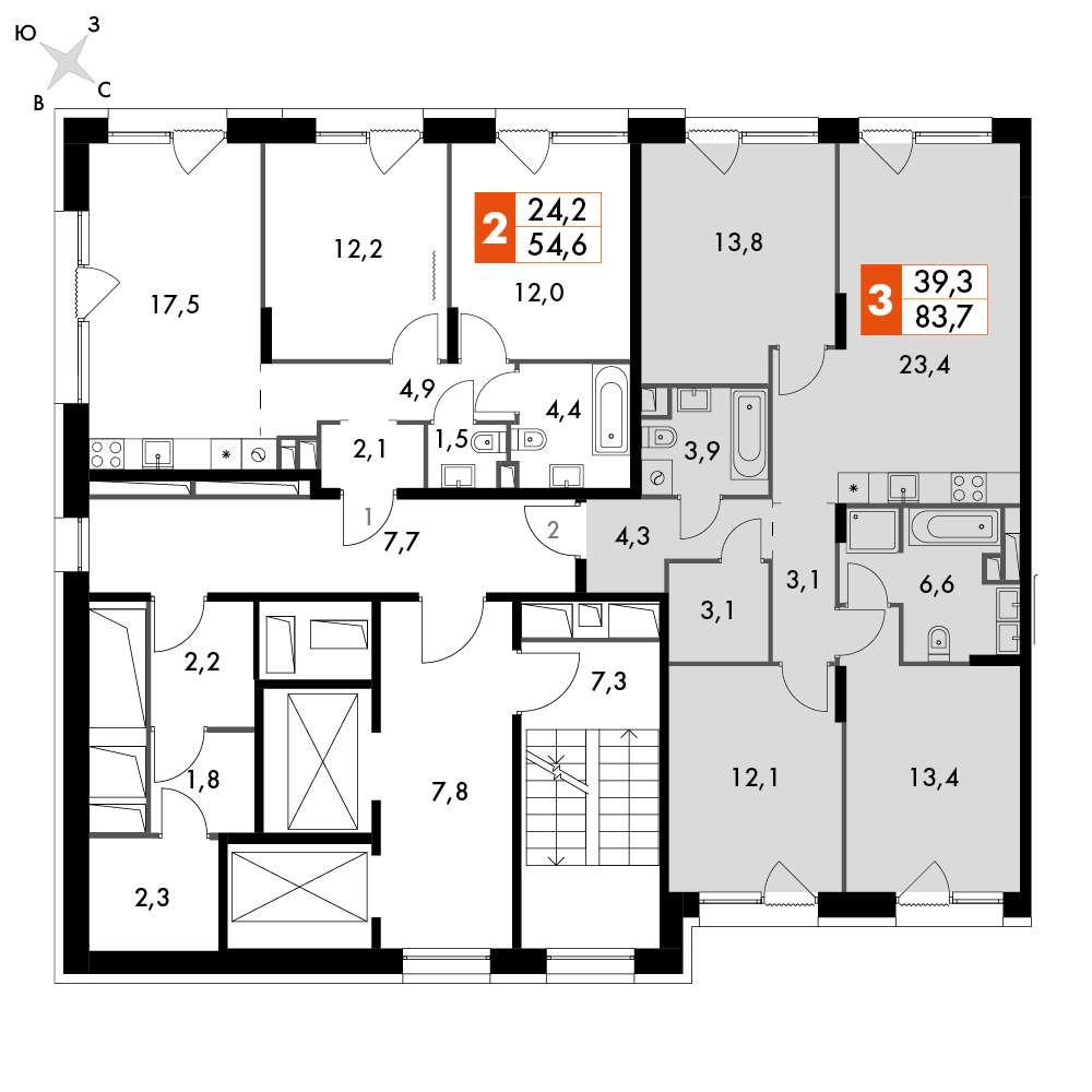 - Общая площадь 83.7 м²