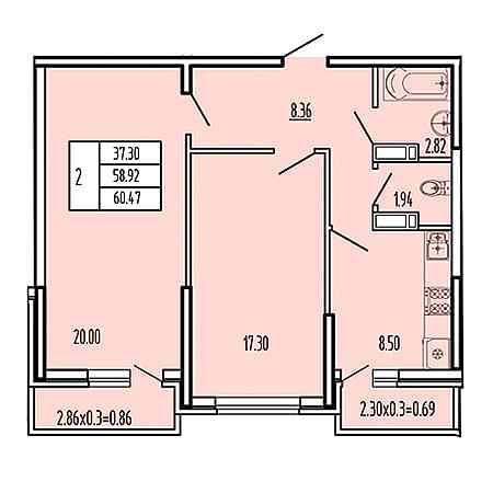 - Санузел 1 раздельный