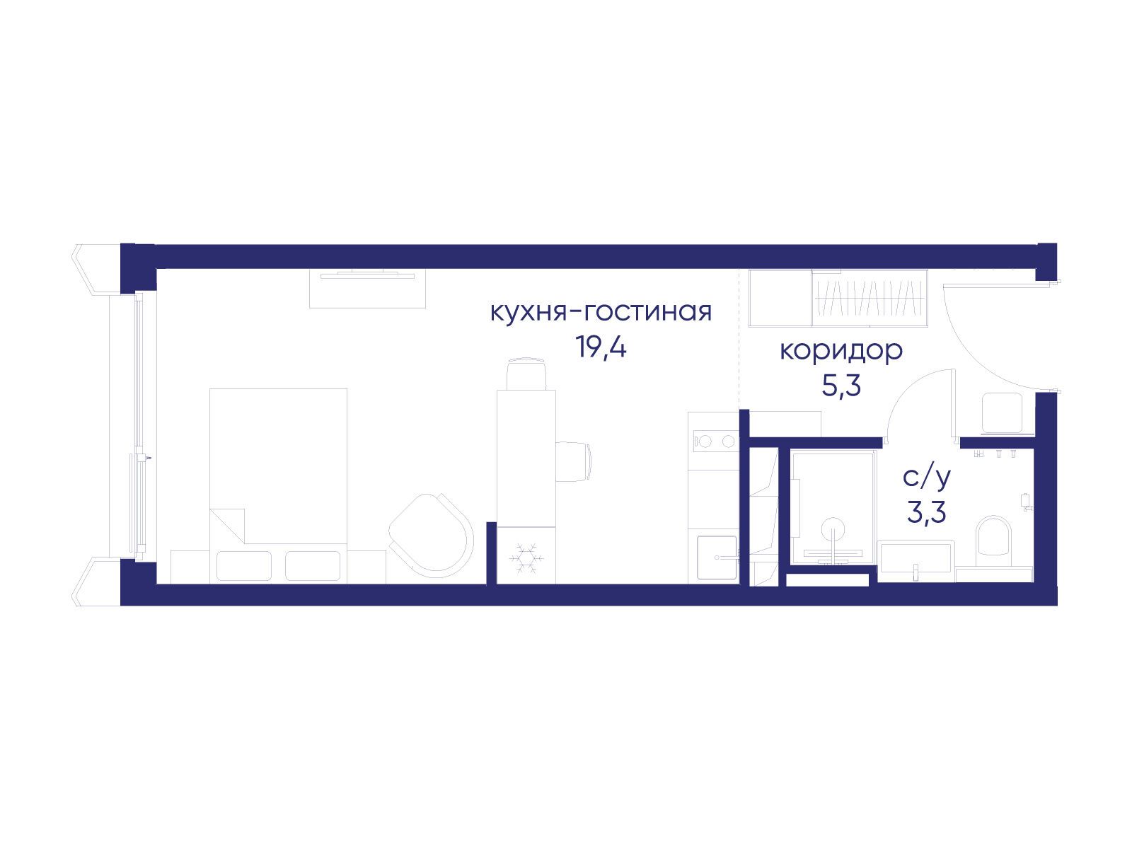 - Общая площадь 28.02 м²