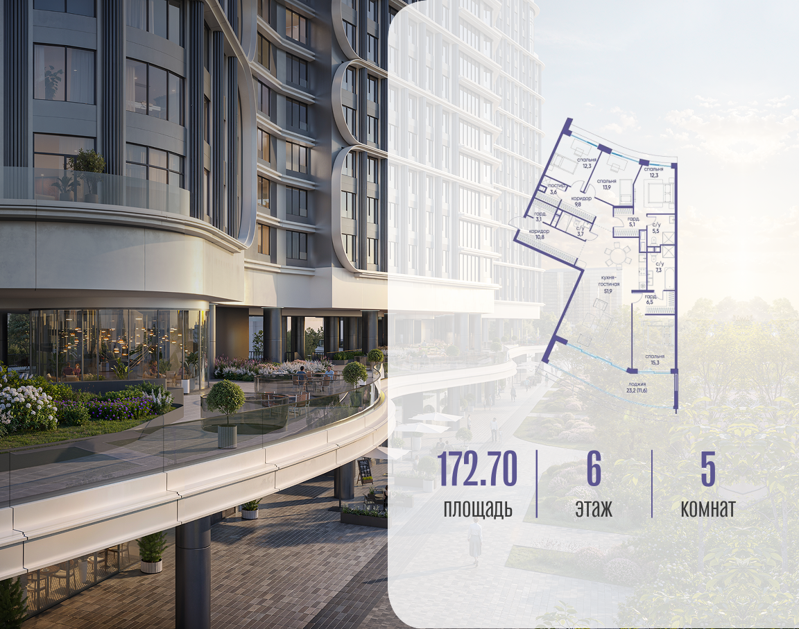 Продаётся многокомнатная квартира от застройщика: общая площадь 172.72 м², жилая 53.80 м², кухня 51.90 м², 6, жилой квартал «Остров 7», корпус 3 (7 квартал) (секция 2). срок сдачи: 4-кв. 2025. , 3 санузла: 3 совмещенных. В жилой зоне 2 больших окна на одну сторону, хорошая инсоляция. Позвоните сейчас и забронируйте квартиру! Купите квартиру в доме у прибрежного парка, в квартале ОСТРОВ.7. Это семь корпусов премиум- и бизнес-класса в одном из лучших мест ОСТРОВА - между бульваром и парком, поблизости от реки. Стильные корпуса имеют узнаваемый вид благодаря бионической пластике фасадов, приподнятых над землей. Для жителей предусмотрены детский клуб, фитнес-рум, коворкинг, переговорные, лаунжи. На крышах устроены видовые общественные пространства с зонами для отдыха и спорта. Двор расположен на двух уровнях: нижний ландшафтный парк и верхняя городская терраса. ОСТРОВ.7 - часть жилого комплекса на западе Москвы, в 15 минутах езды от центра. Это настоящий заповедник посреди большого города, в окружении реки и 650 га заповедников. Здесь все необходимое находится по соседству: от детского сада до супермаркета, от фитнес-зала до серфинг-центра. На территории созданы все условия для отдыха и общения: клубная инфраструктура в домах и дворы-парки, набережные и променады, маршруты для спортсменов, детей и возрастных жителей. В нескольких минутах ходьбы расположена станция метро "Терехово" БКЛ. На автомобиле - 10 минут до Москва-Сити и 15 минут до Садового кольца.