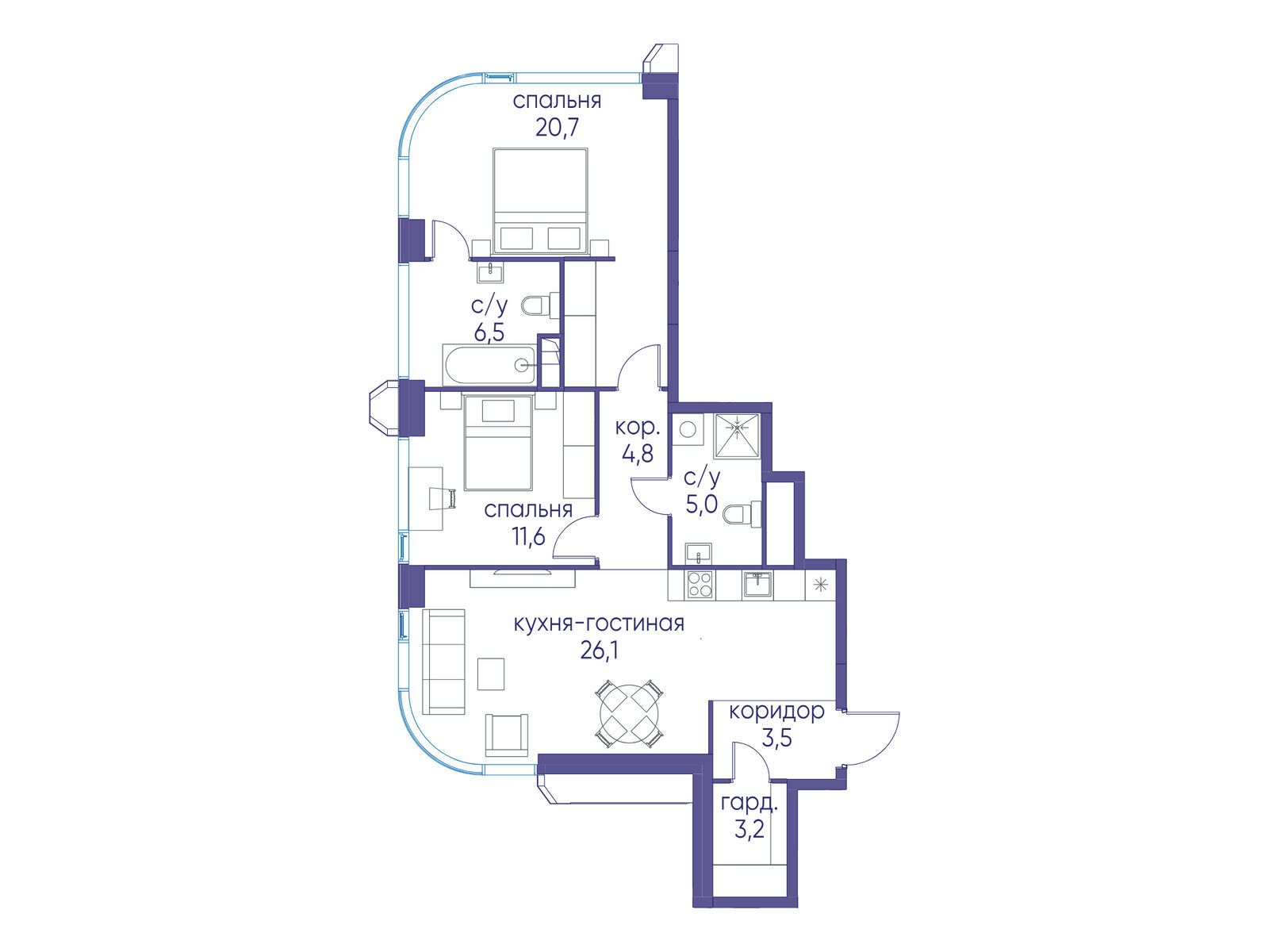 Продаётся 2-комн. квартира от застройщика: общая площадь 81.42 м², жилая 32.30 м², кухня 26.10 м², 12-й этаж, жилой квартал «Остров 12», корпус 1 (секция 1). Срок сдачи: 1 квартал 2029 года. 2 совмещенных санузла. В жилой зоне 2 больших окна на одну сторону, хорошая инсоляция. Позвоните сейчас и забронируйте квартиру! ОСТРОВ от Донстрой — жилой комплекс на западе Москвы, в Мневниковской пойме. Уникальное преимущество комплекса — в том, что он обособлен от города рекой и природным парком (650 га). Благодаря природному окружению эта территория имеет лучший экологический рейтинг в столице. Кварталы ОСТРОВА объединены ландшафтным дизайном в единое пространство — с набережными и Центральным бульваром. На ОСТРОВЕ любые объекты, необходимые для полноценной жизни и отдыха, находятся на расстоянии 15-минутной прогулки. Торговый центр и супермаркеты, кафе и рестораны, фитнес, салоны красоты, школы и детские сады. А также крупнейший в Москве спортивный кластер.